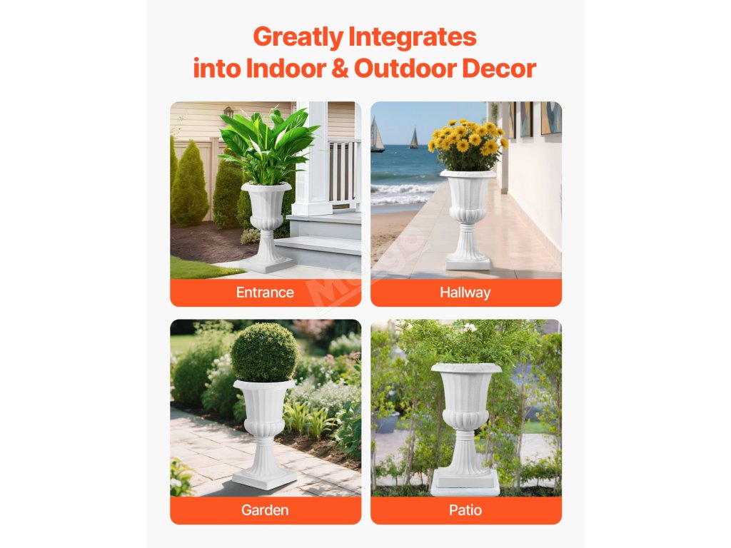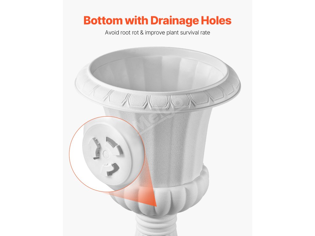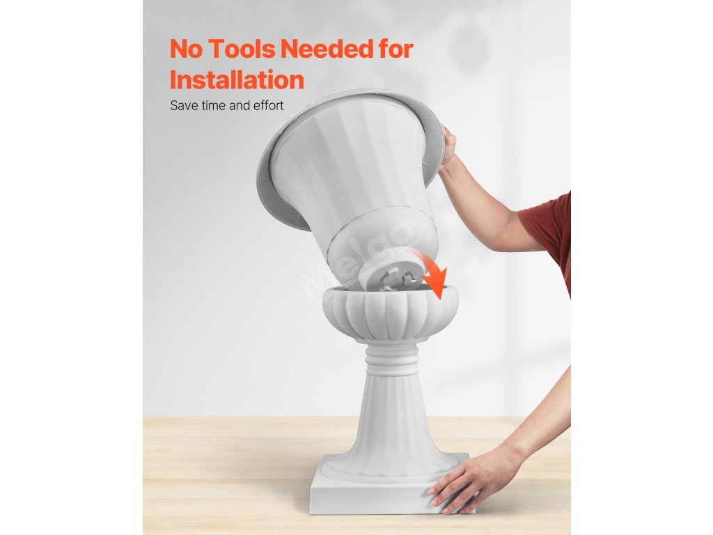 Tento květináč na podstavci je vyroben z vysoce kvalitních materiálů, je lehký, odolný proti prasknutí a navržen tak, aby odolal nepříznivým povětrnostním podmínkám. Ať už svítí slunce, nebo prší, zůstane ve skvělé kondici po dlouhá léta.