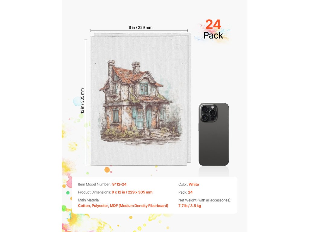 Plátna na malování 24 ks 9×12 inch bílé, vhodné na akryl a olej