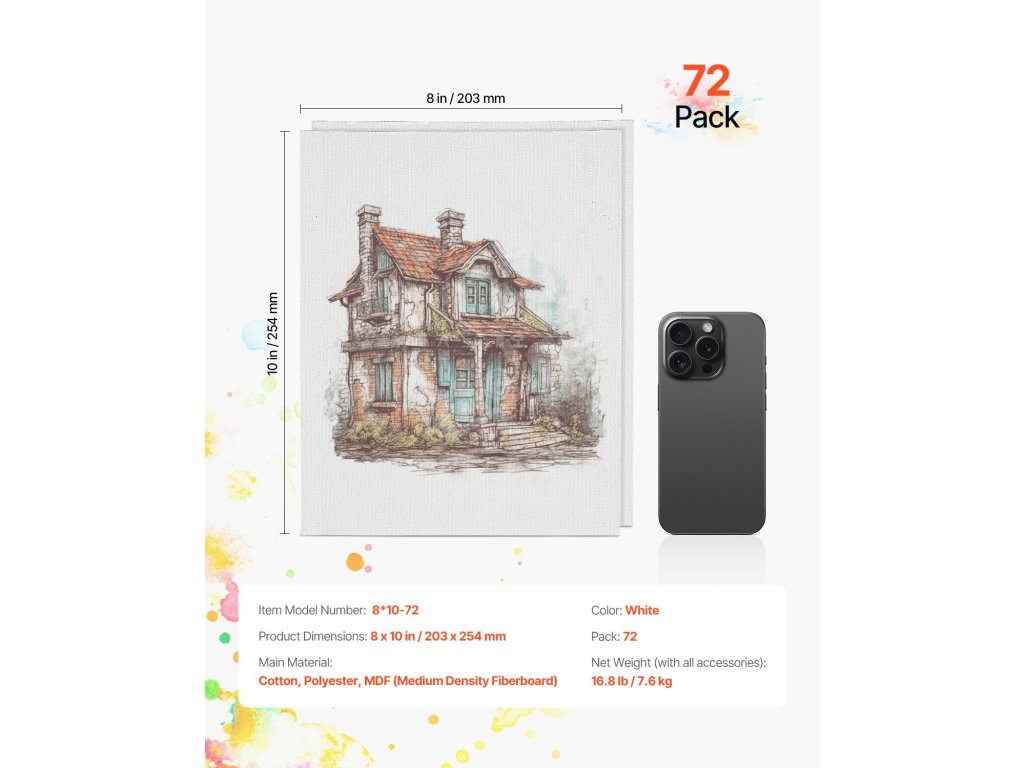 Plátna na malování 8×10 inch, 72 ks, panely pro akryl a olej