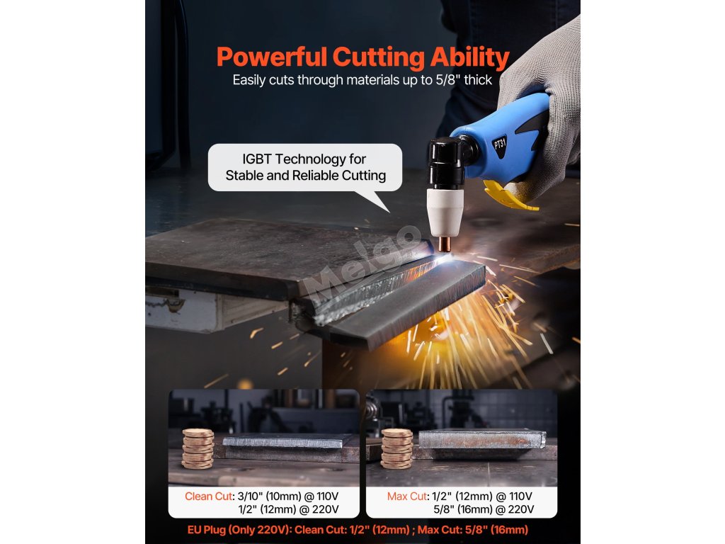 maximální výstupní proud 50 A podporuje čisté řezy do 12 mm s maximální tloušťkou řezu 16 mm. (Poznámka: pouze 220 V. Napájecí adaptér není součástí dodávky)