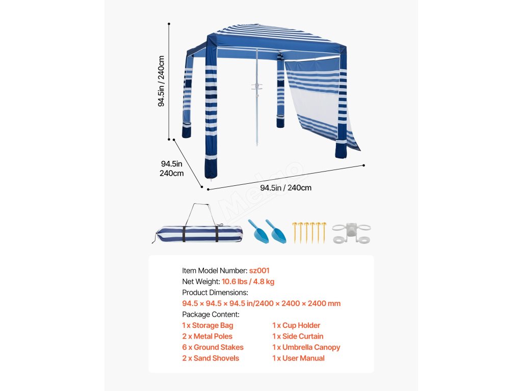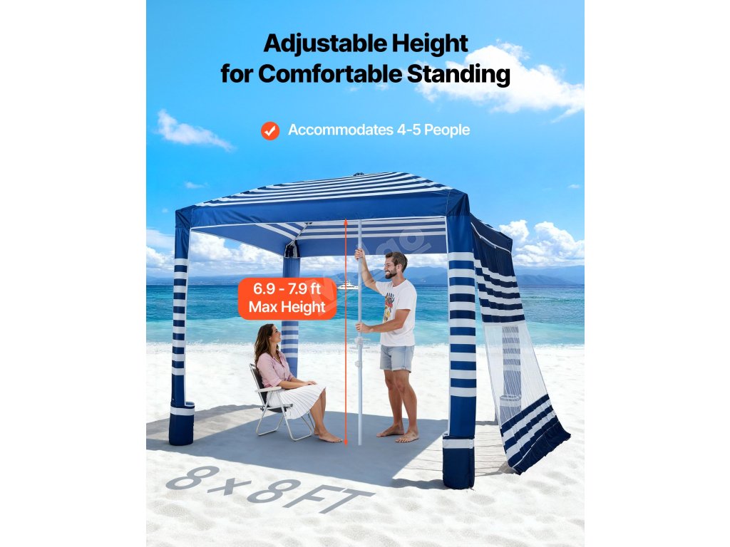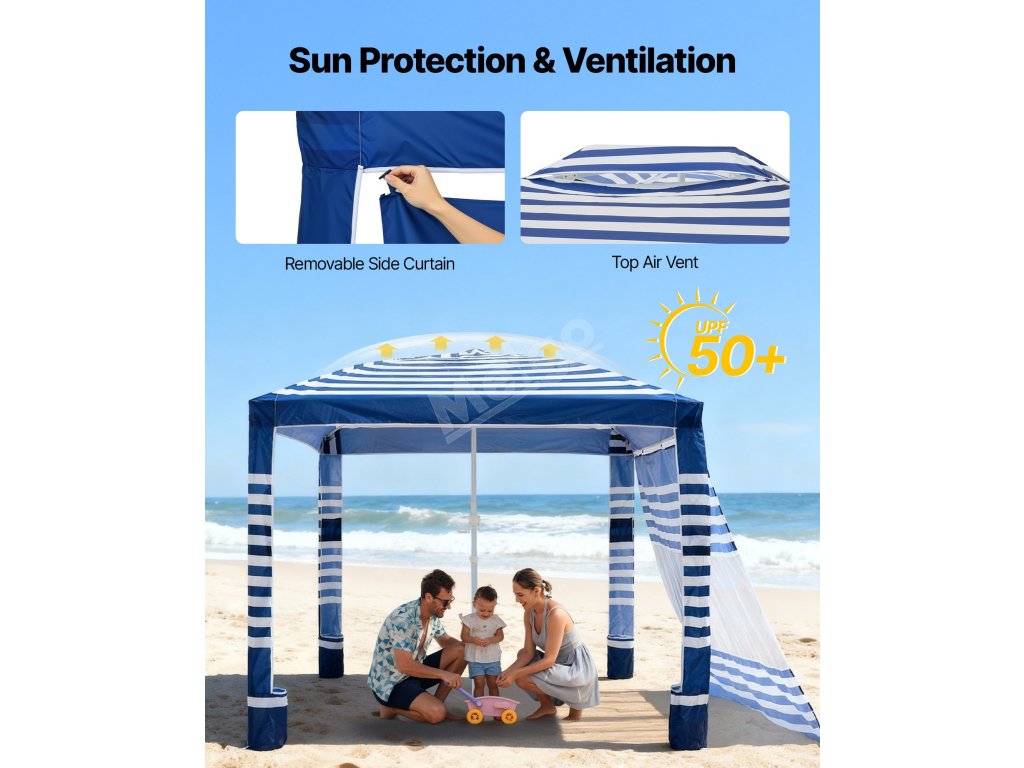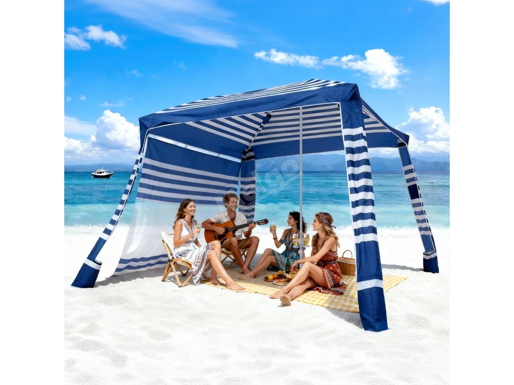 Plážová kabina 2.4×2.4 m, upf 50+, boční stěna, nastavitelná výška