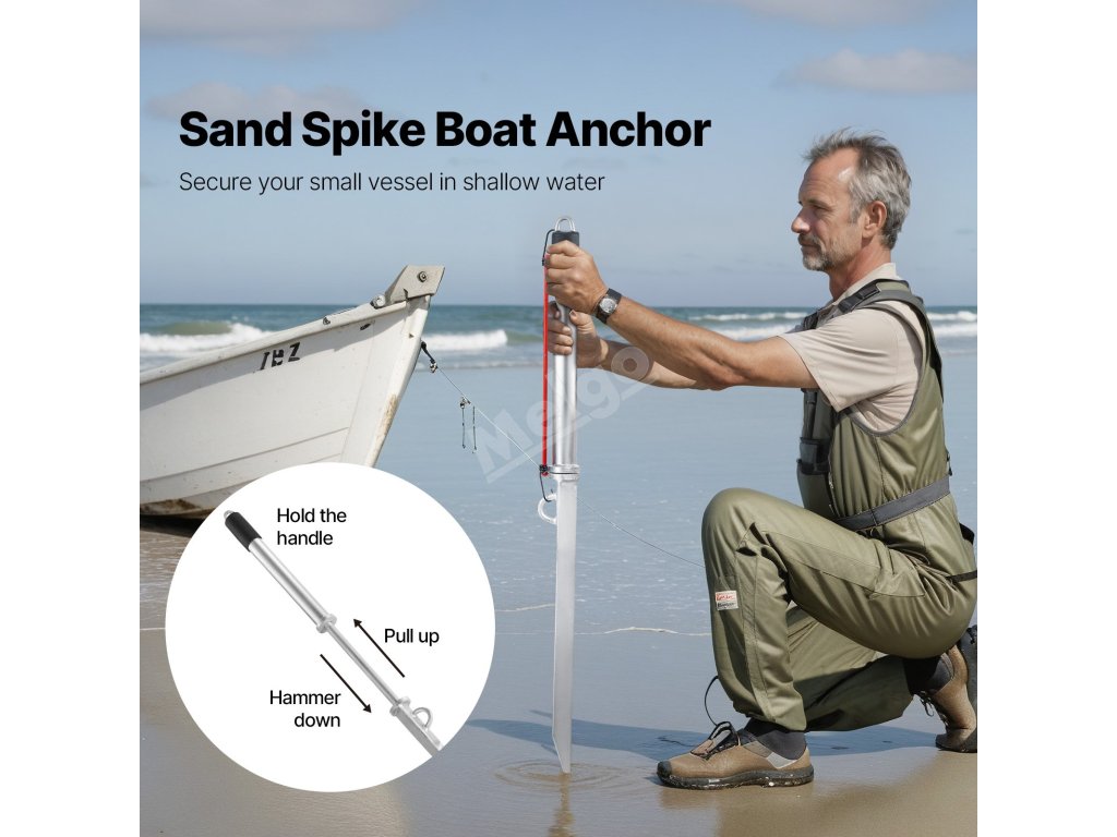 Naše kotva s pískovým hrotem nabízí pohodlné a spolehlivé řešení pro kotvení malých lodí v mělkých vodách. Je vyrobena z pozinkované oceli a má protiskluzovou gumovou rukojeť pro větší pohodlí. Díky dvěma vázacím kroužkům ji lze snadno upevnit a uložit do přiložené úložné tašky.