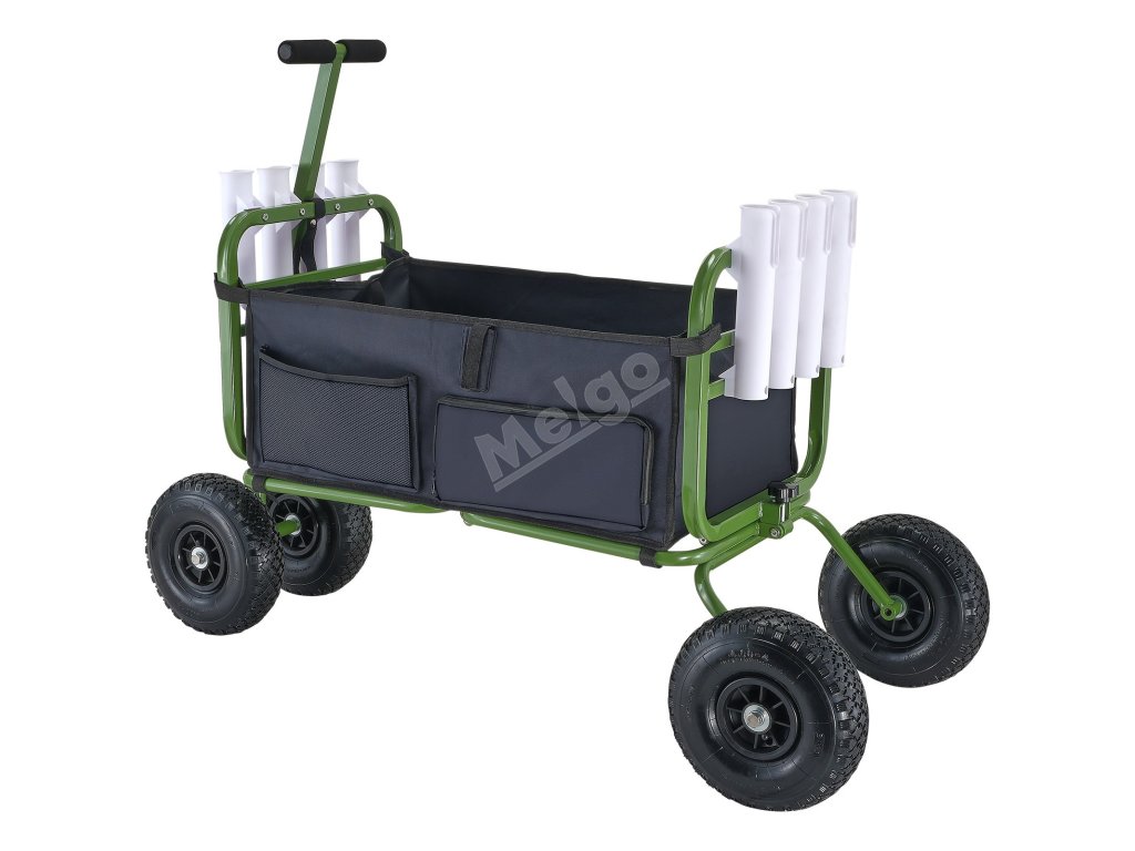 Představte si to: rybářský vozík s pevným ocelovým rámem, který se hladce pohybuje na 11palcových gumových nafukovacích kolech. S rozměry 30,9 x 18,5 x 16,3 palce a 8 držáky na pruty, které jsou připraveny unést až 300 kg, je to ideální partner pro rybářská dobrodružství.