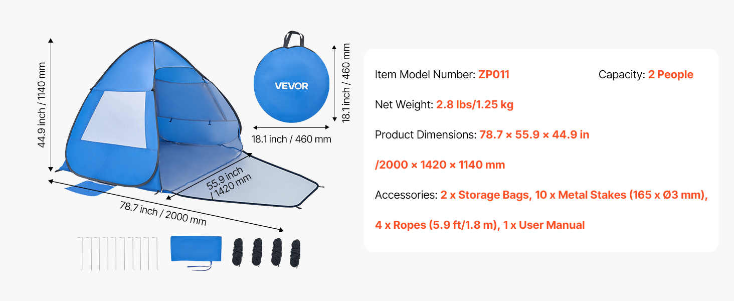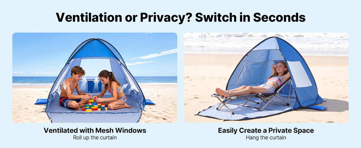Plážový stan pro 2 osoby upf 50+ přenosný s kapsami a taškou
