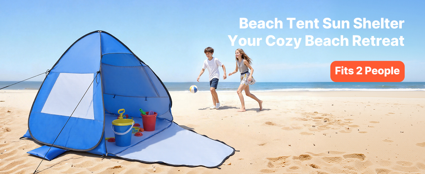 Náš plážový stan se stínítkem je navržen tak, aby vám zpříjemnil pobyt na pláži a poskytl pohodlné útočiště ve stínu pro celou rodinu.