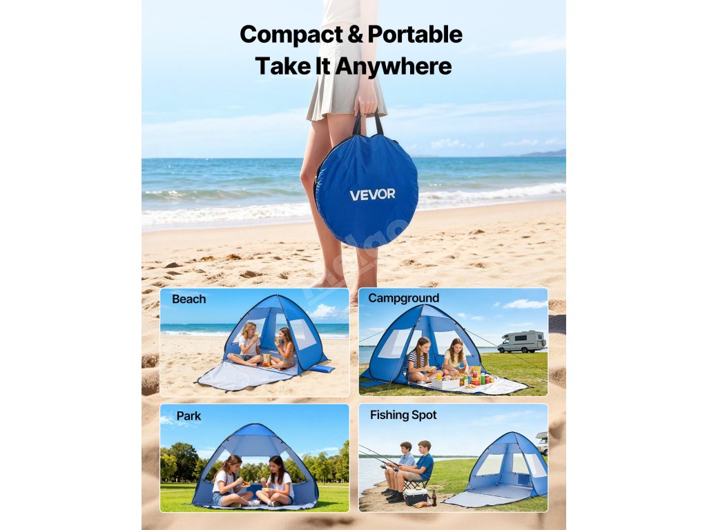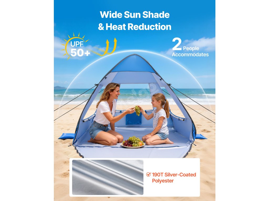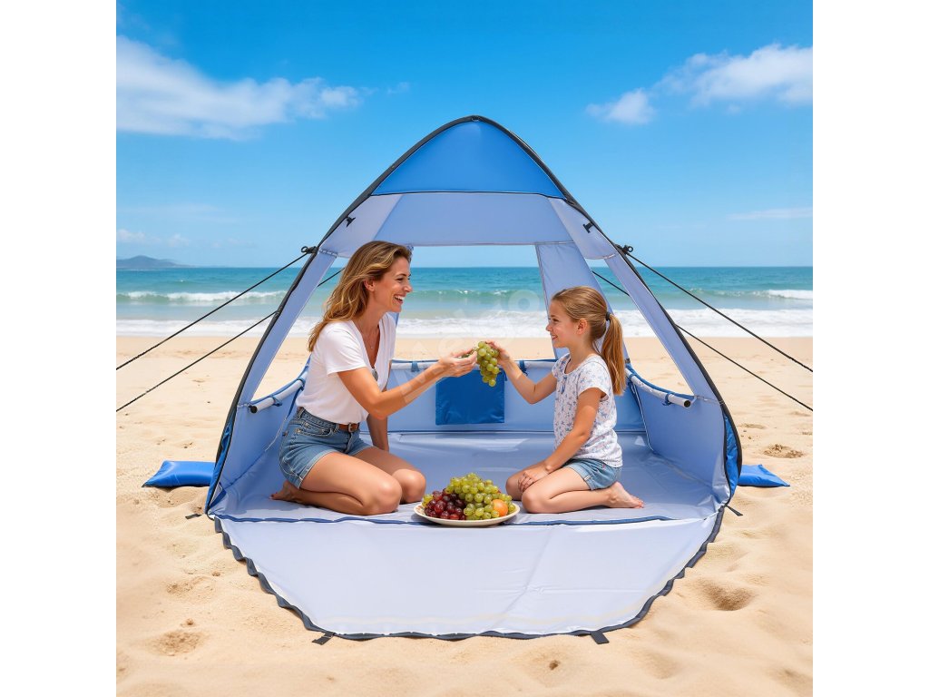 Plážový stan pro 2 osoby upf 50+ přenosný s kapsami a taškou