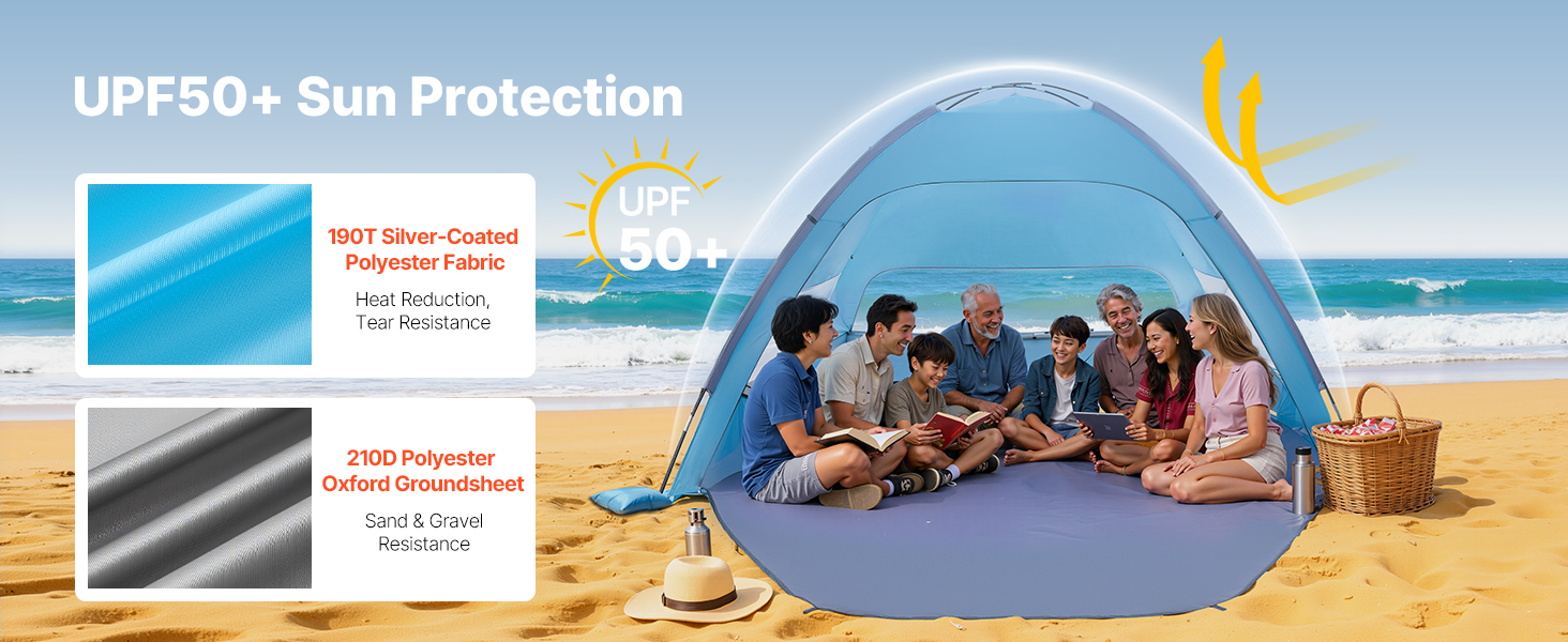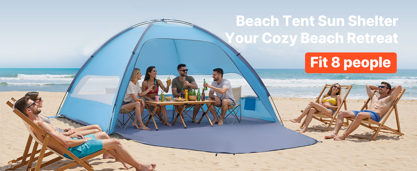 Náš přenosný plážový stan poskytuje dostatek stínu, aby vás i vaši rodinu ochránil před ostrým přímým sluncem a zajistil vám pohodlný a pohodový den.