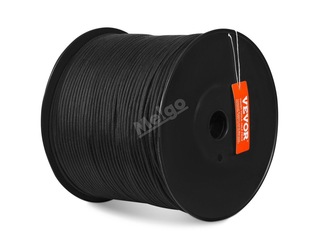 Pletené nylonové lano 3/16 in × 1000 ft, 32 pramenů, 720 lbs, černé