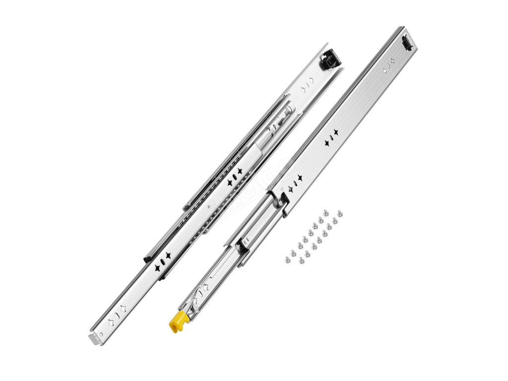 Tyto zásuvkové kolejnice vyrobené z vysoce kvalitní oceli mají vysokou tvrdost, velkou stabilitu a odolnost. Pracují se správným uložením a nízkou hlučností. Jsou dodávány s podrobnými vodítky a praktickými šrouby. Jsou ideální pro ukládání do skříní, průmyslových zásuvek, komerčních zařízení, upravených vozidel atd.