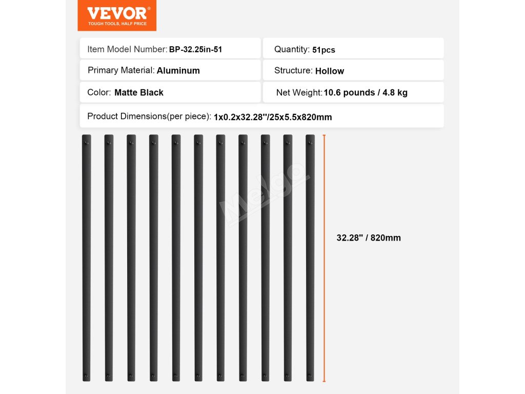 Ploché hliníkové balustery na zábradlí 32.28"×1"×0.2", 51 ks, černé