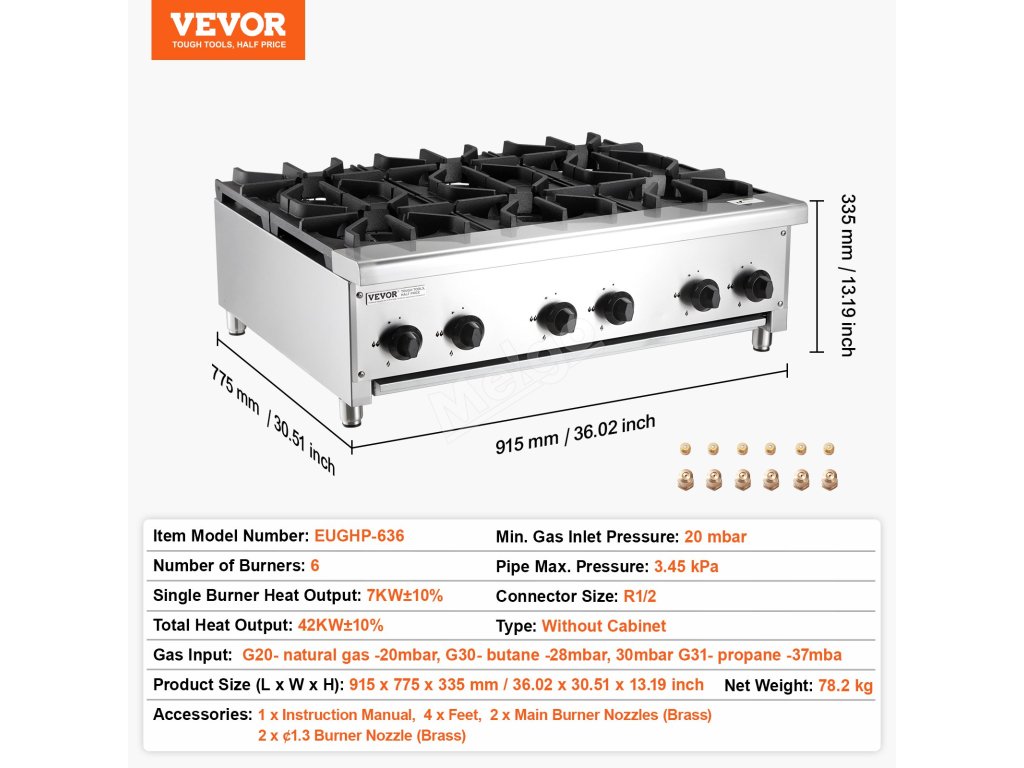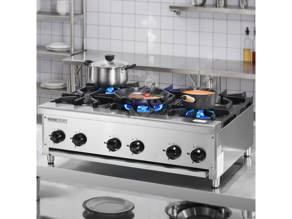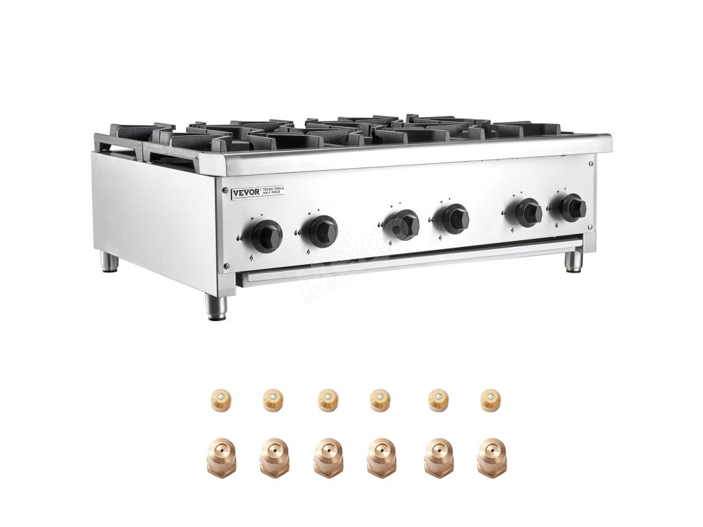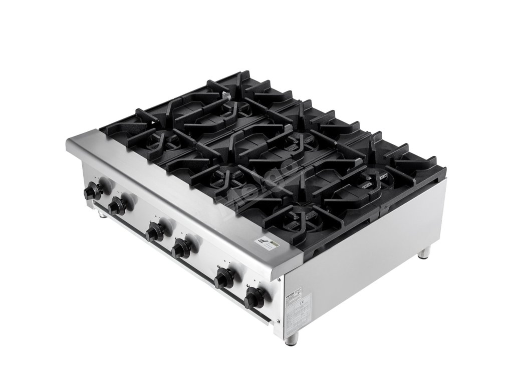 Plynový sporák 6 hořáků, 42KW, stolní, nerez, na propan i zemní plyn