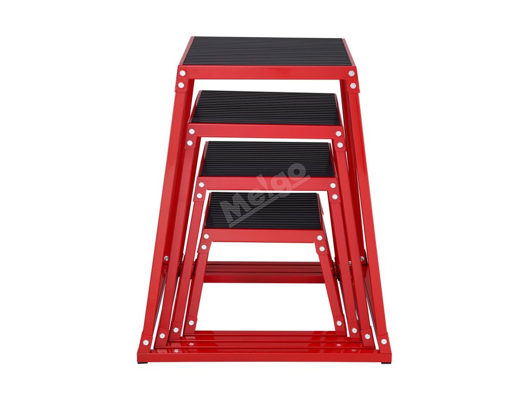 Tréninkový plyo box se čtyřmi gumovými podložkami ve spodní části a texturovaným silikonovým povrchem v horní části, který zajišťuje stabilitu a přilnavost pro bezpečné a efektivní cvičení. Povrch ocelových trubek je opatřen práškovou barvou pro vizuálně atraktivní a korozivzdornou povrchovou úpravu.