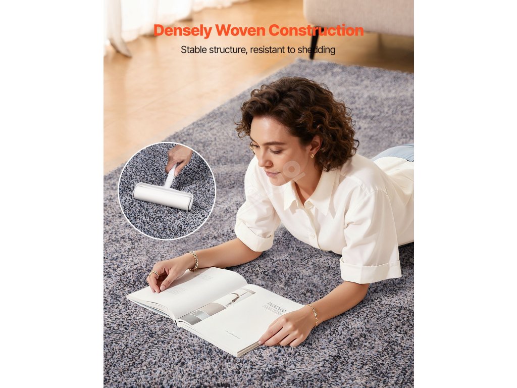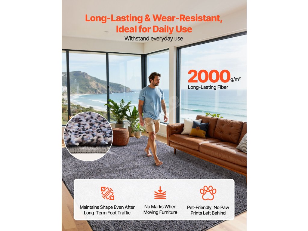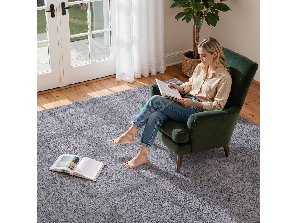 Tento plyšový koberec je navržen pro každodenní život a kombinuje odolný povrch z vláken se spodní stranou z TPR, která pevně drží na místě. Jeho hustá vazba zabraňuje rozsypání nebo ztrátě tvaru, takže koberec zůstává úhledný a odolný i po častém chození, sezení nebo lenošení.