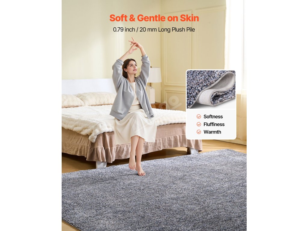 Plyšový koberec 2.44×3.05 m, dlouhý vlas, nepouští, protiskluz, modrošedý