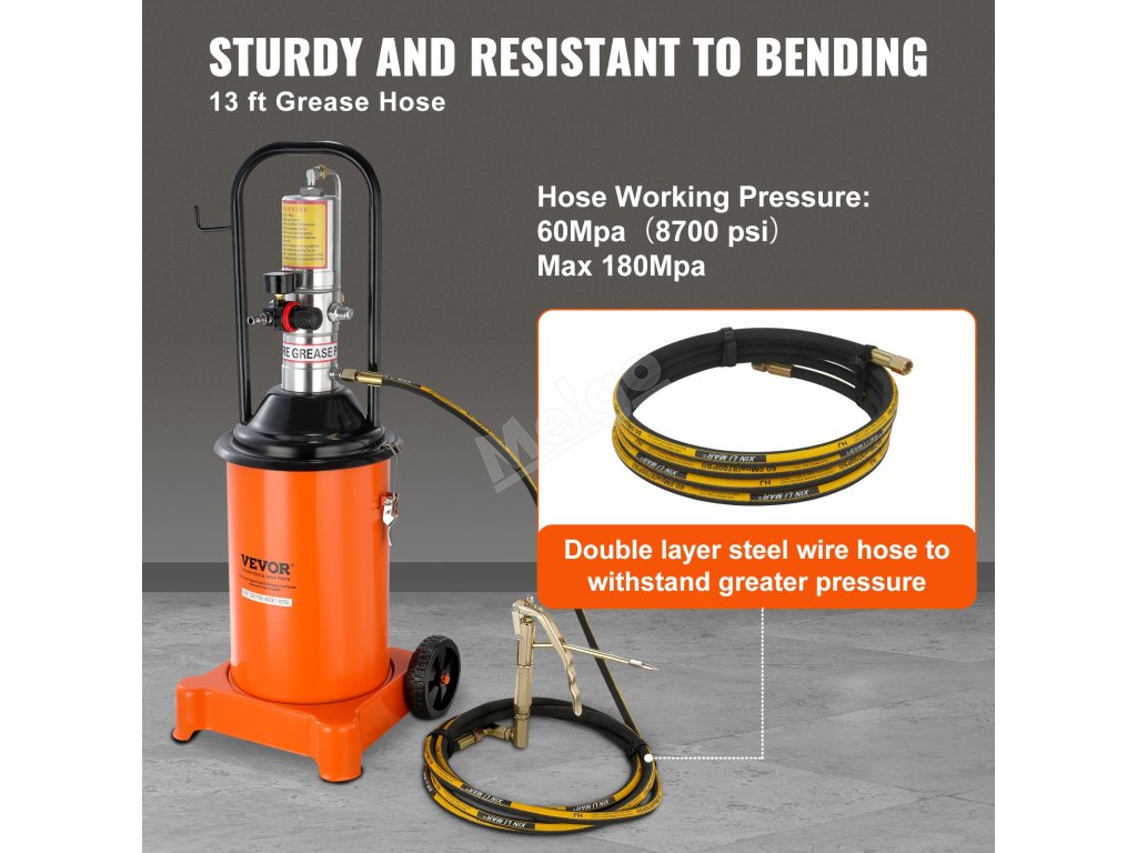 Pneumatická mazací pumpa 3 gallon 12l s 13 ft hadicí a koly 50:1