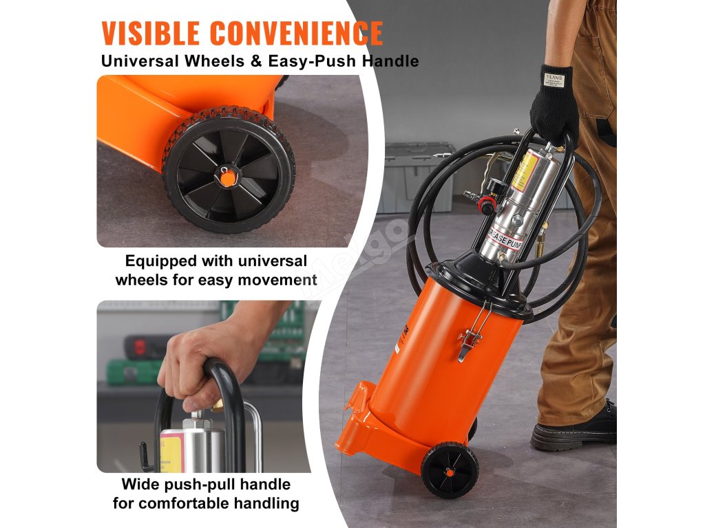 Každý aspekt našeho přenosného čerpadla na tuk, od ocelové trubky a prodloužené rukojeti až po hák mazací pistole, je navržen s ohledem na stabilitu, snadné používání a přehlednost.
