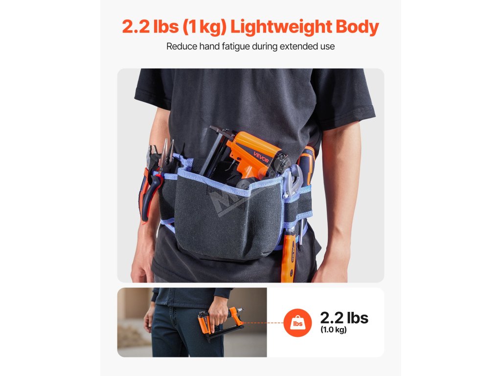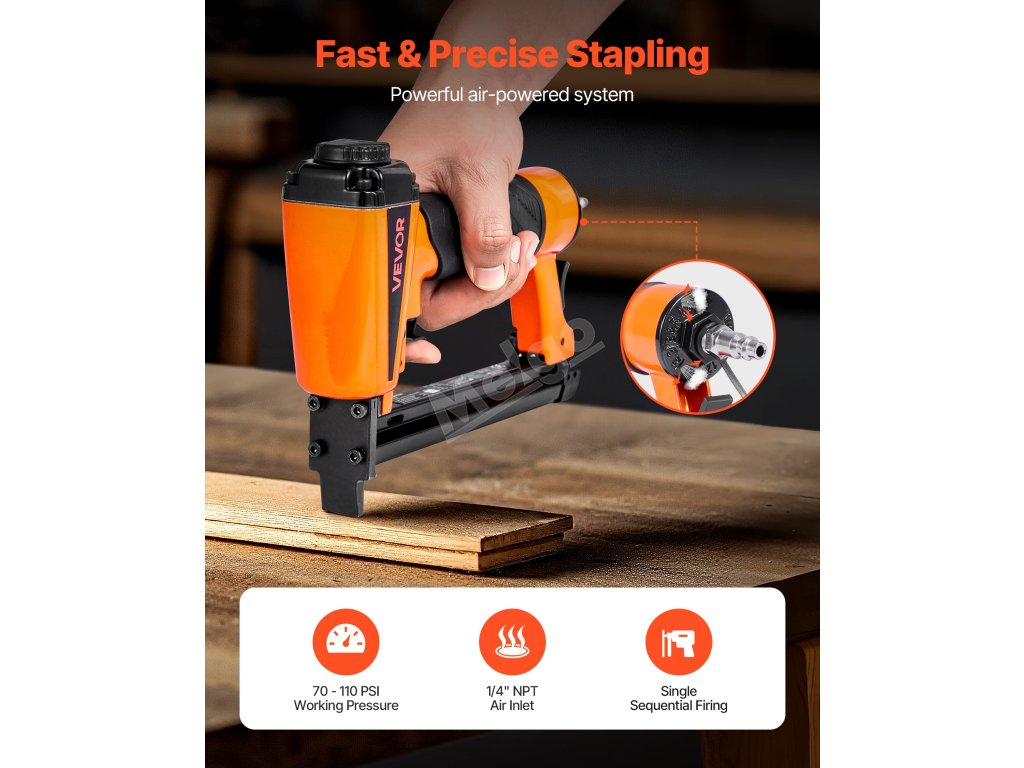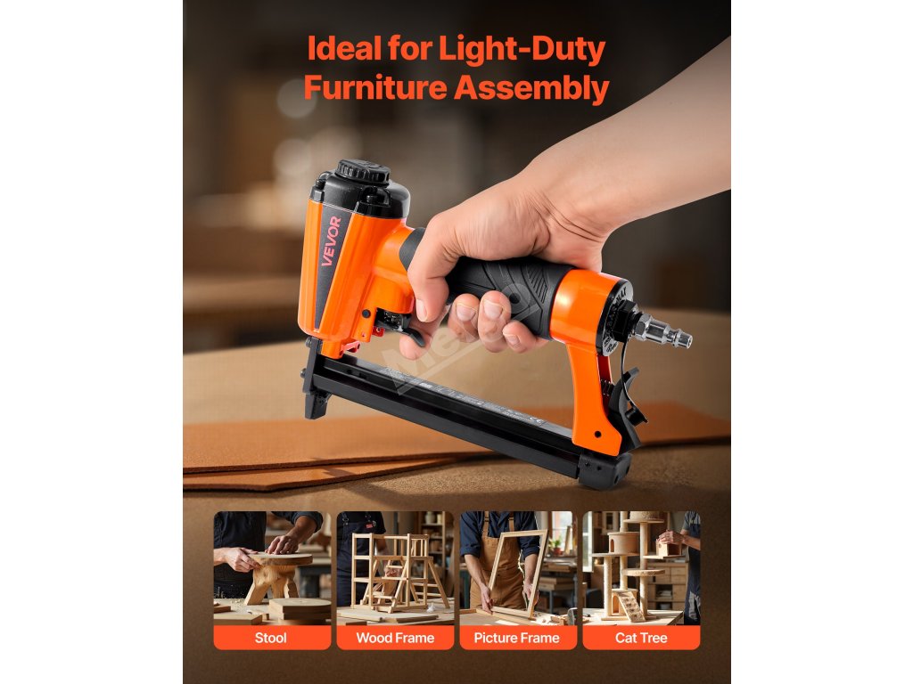 Vhodné pro čalounění, montáž lehkého nábytku, zpracování dřeva, montáž skříní, rámování obrazů, montáž ozdobných lišt, výrobu pohovek a křesel a další kutilské projekty. Pro použití je třeba připojit ke vzduchovému kompresoru (vzduchový kompresor není součástí dodávky)