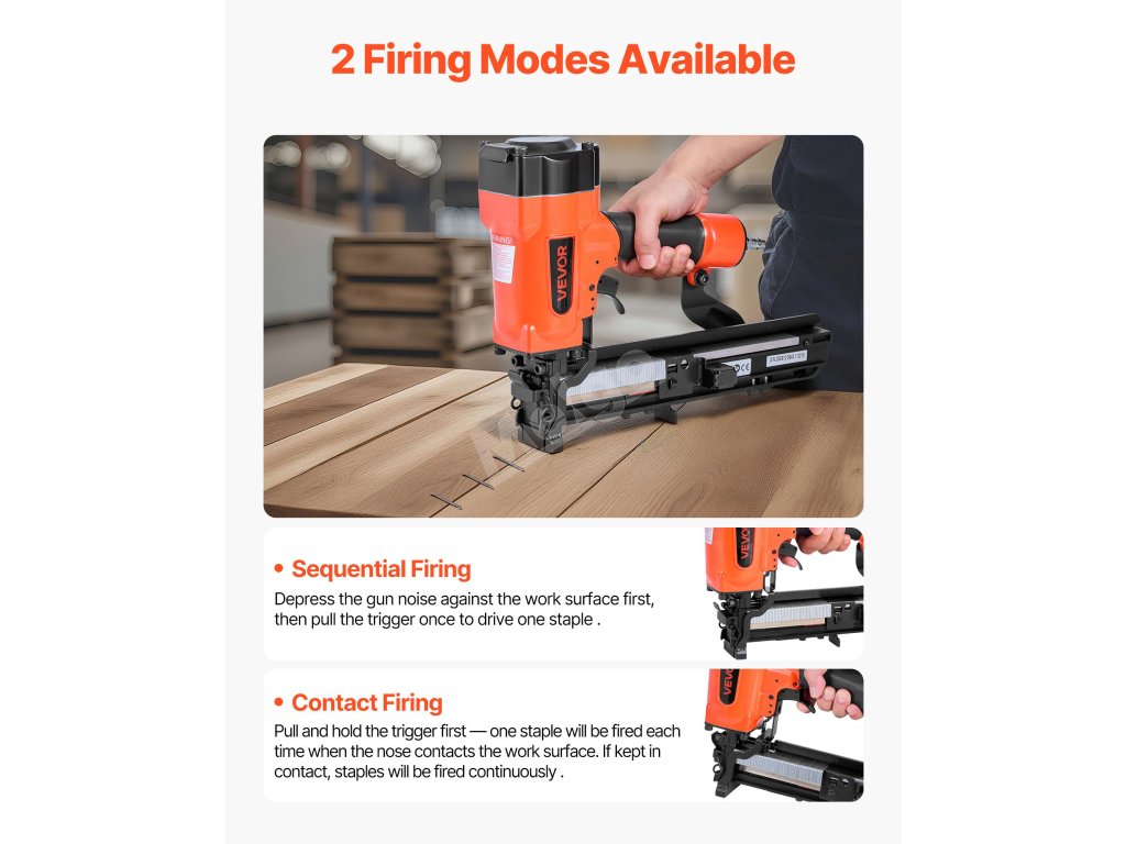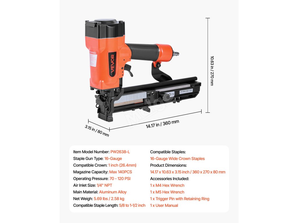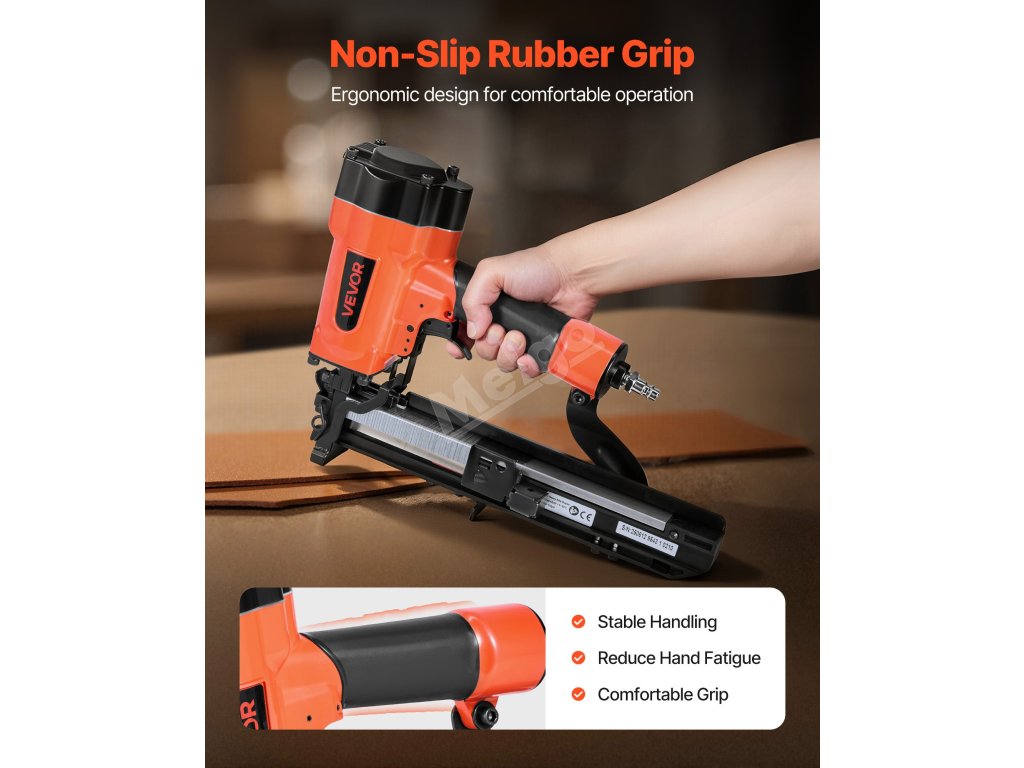 Ideální pro opláštění stěn, stavbu plotů a podhledů, střešní krytiny, rámy nábytku, montáž překližkových rámů, podnosů, montáž beden a krabic, vinylové obklady a další. Pro použití musí být připojen ke vzduchovému kompresoru (vzduchový kompresor není součástí dodávky).