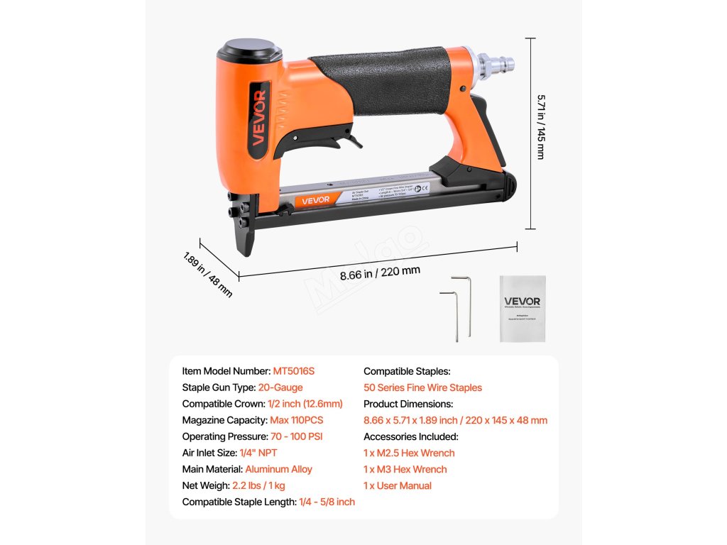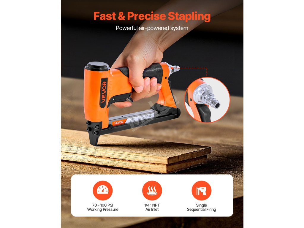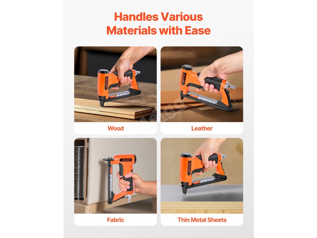 Vhodné pro čalounění, montáž lehkého nábytku, zpracování dřeva, montáž skříní, rámování obrazů, montáž čalounění, výrobu pohovek a křesel a další kutilské projekty. K použití je třeba ji připojit ke vzduchovému kompresoru (vzduchový kompresor není součástí dodávky).