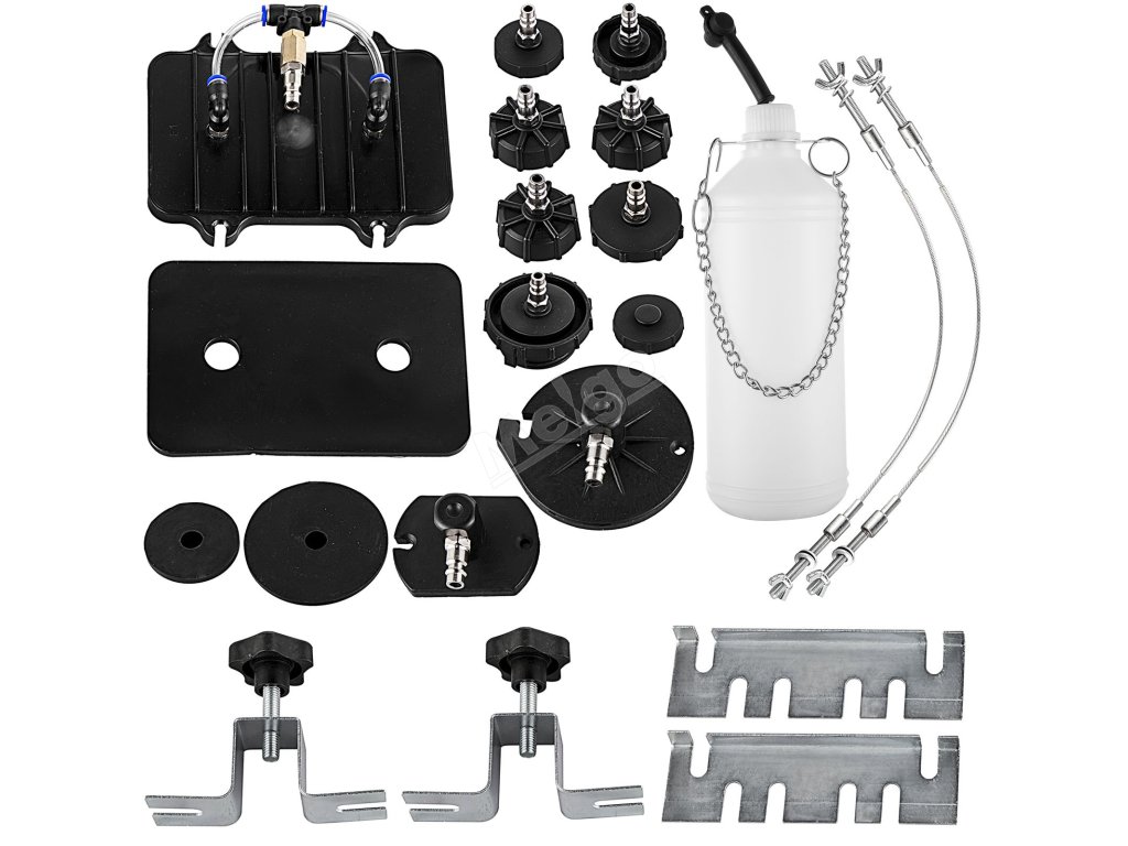 Tato sada pro odvzdušnění brzd a spojky je vhodná pro odvzdušnění brzdových a spojkových systémů vozidel s ABS, umožňuje práci jednoho člověka v garáži a je vhodná i pro profesionální dílnu.