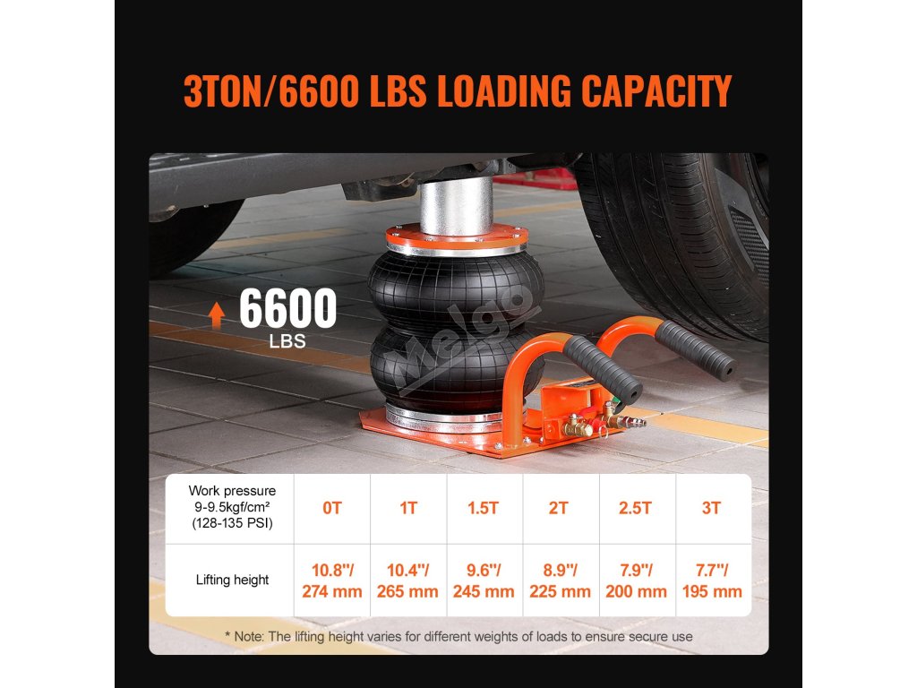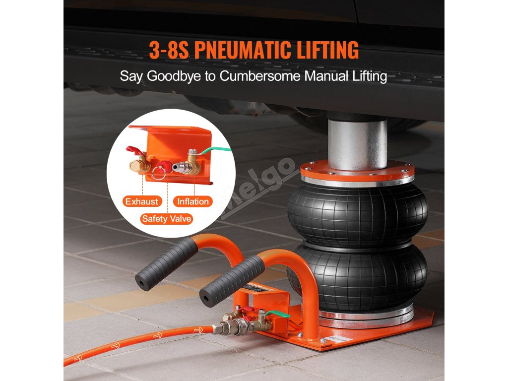 Pneumatický zvedák má vysokou nosnost, která umožňuje zvednout většinu vozidel, jako jsou osobní automobily, pickupy, dodávky, SUV a další vozidla. V porovnání s tradičními zvedáky je pneumatický zvedák časově úspornější, snadno se používá a je přenosný. Rychlé řešení vašich problémů s údržbou!