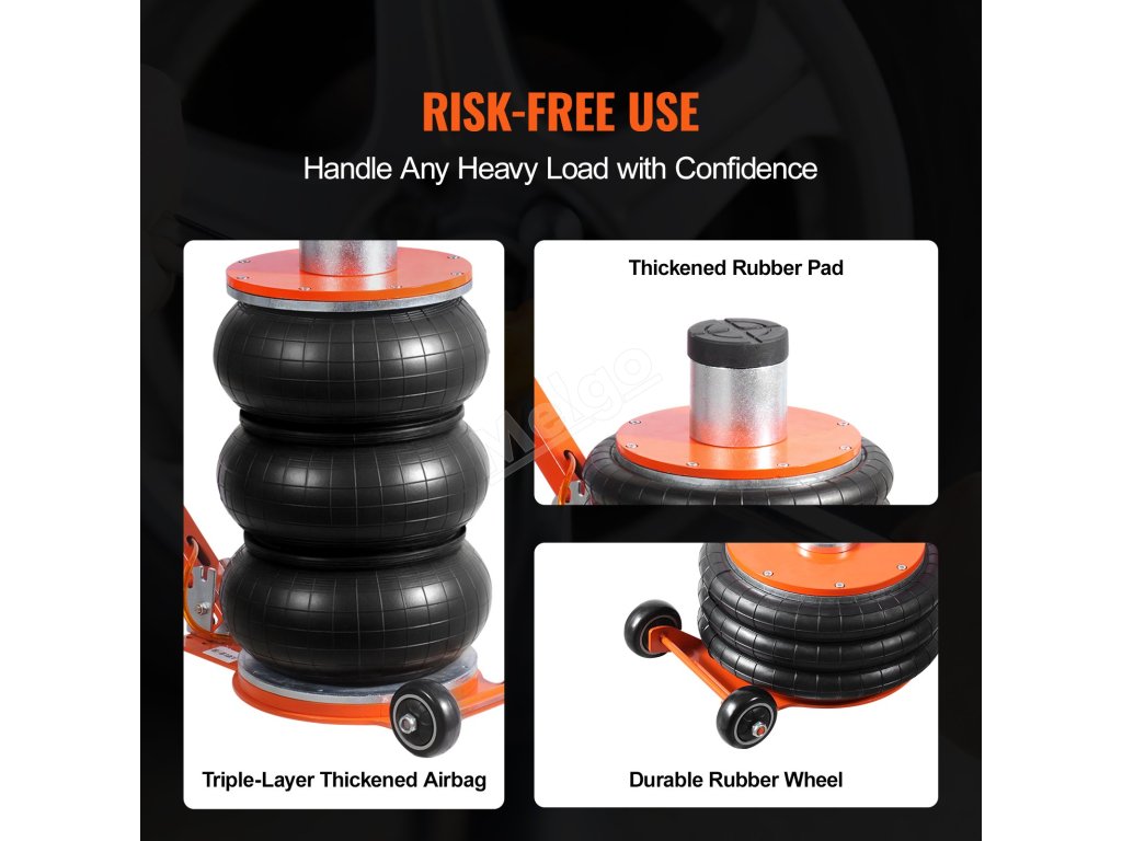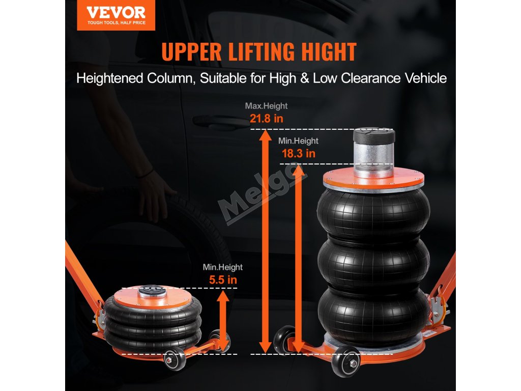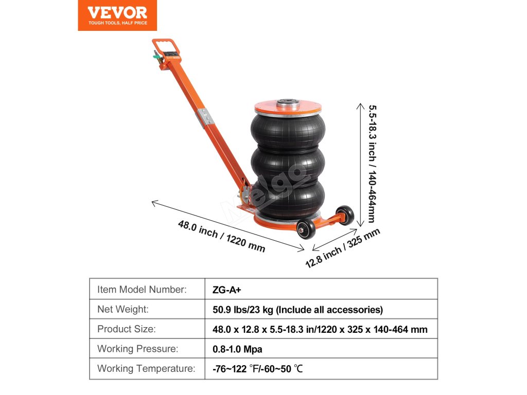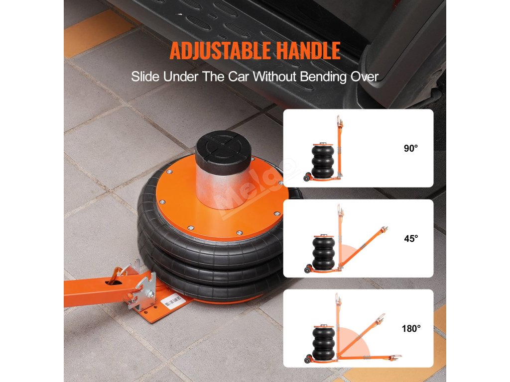 Pneumatický zvedák má vysokou nosnost, která umožňuje zvedat většinu vozidel. Ve srovnání s tradičními zvedáky je pneumatický zvedák časově úspornější a snadněji se používá. Nastavitelnou rukojeť lze nastavit ve třech úhlech, což je vhodné pro vaše použití při údržbě.