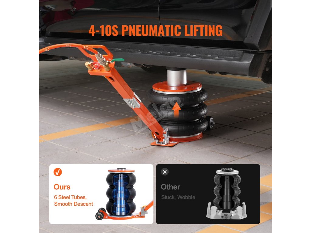 Vnitřní zvedací část vzduchového zvedáku nahrazuje tradiční 5dílnou ocelovou trubku 6dílnou ocelovou trubkou, čímž se vědecky optimalizuje výška a struktura každé části ocelové trubky. Díky tomu je vzduchový zvedák stabilnější a nesnadno se zasekává i při zvedání těžkých vozidel.