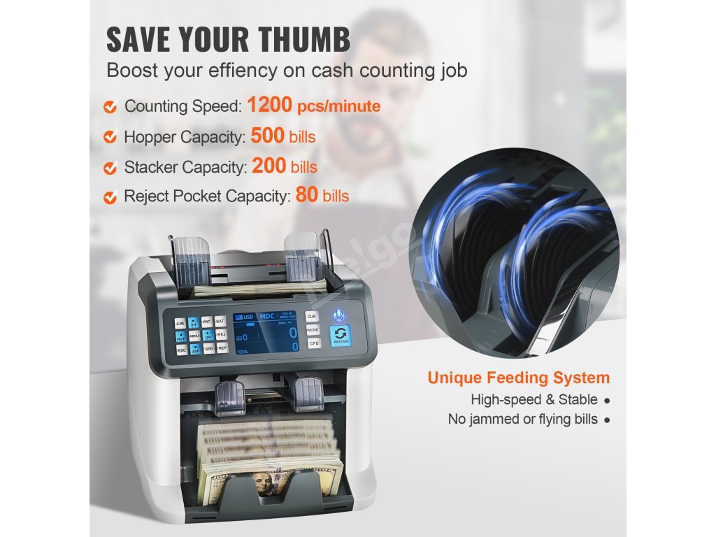 S počítačkou peněz VEVOR si vždy s jistotou spočítáte hotovost