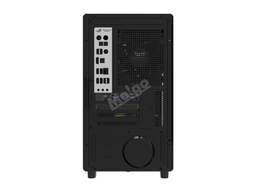 Zadní část skříně je vybavena tvarovanou přihrádkou a průchozími otvory pro přehledné vedení kabelů. Toto uspořádání usnadňuje instalaci komponent a zlepšuje proudění vzduchu v hlavním prostoru. Přední panel obsahuje port USB 3.0, 2 porty USB 2.0, jeden port HD Audio a tlačítko napájení. Díky tomu můžete využívat rychlý přístup k základním funkcím, aniž byste museli sahat do zadní části skříně.