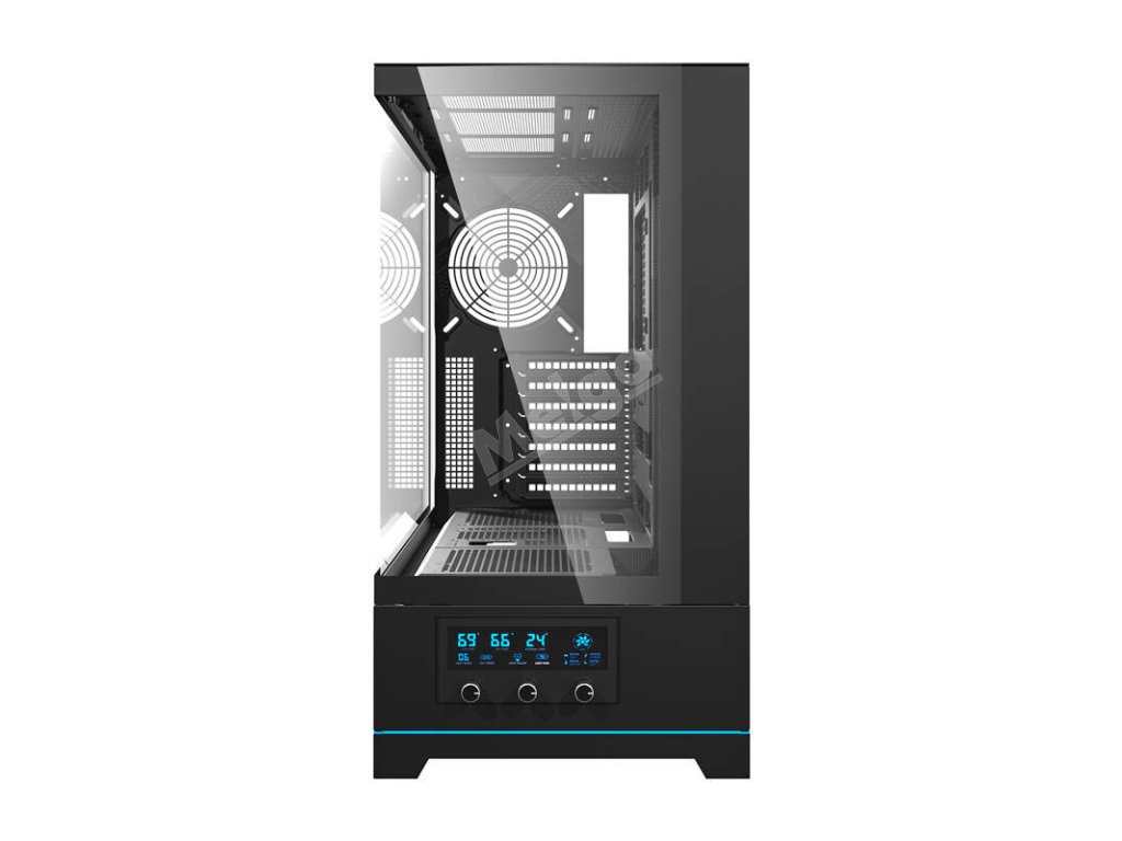 Monitor DY451 je vybaven bočním panelem z tvrzeného skla, který mu dodává moderní vzhled a umožňuje zobrazovat komponenty s efektem osvětlení A-RGB (bez ventilátorů). Takový design potěší milovníky estetiky a ty, kteří si chtějí užít dynamický vzhled svého počítače.