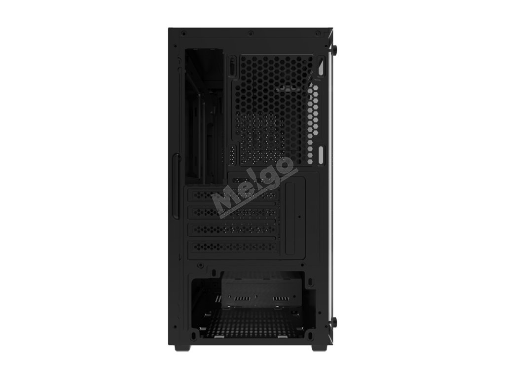 Skříňka je vybavena bočním panelem z tvrzeného skla, který je připevněn praktickými šrouby s palcem. Díky tomu máte rychlý a snadný přístup k vnitřku počítače, aniž byste museli sahat po nářadí. Toto řešení se skvěle hodí jak pro upgrade hardwaru, tak pro pravidelné čištění chladicího systému. Přední část skříně je vybavena moderním otevřeným panelem s větracími otvory, který nejenže dodává celé skříni dynamický ráz, ale především pomáhá cirkulaci vzduchu a chrání tak komponenty před přehřátím.