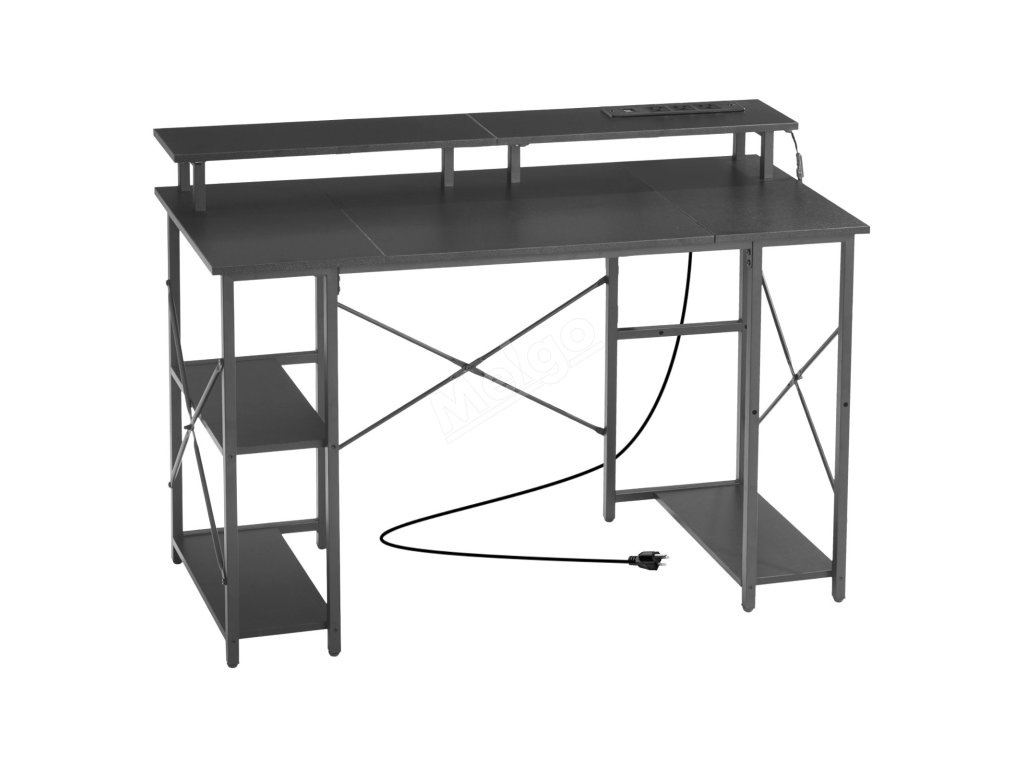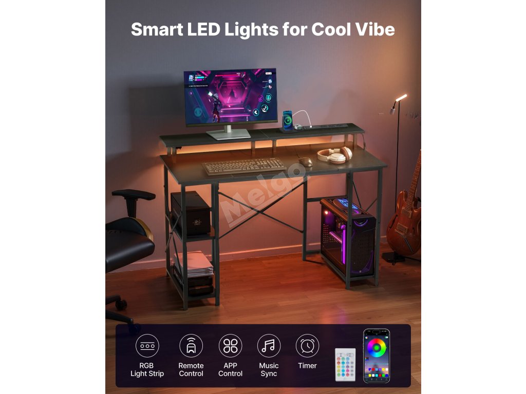 Počítačový stůl 120 cm s led, zásuvkami, stojanem a 2 policemi