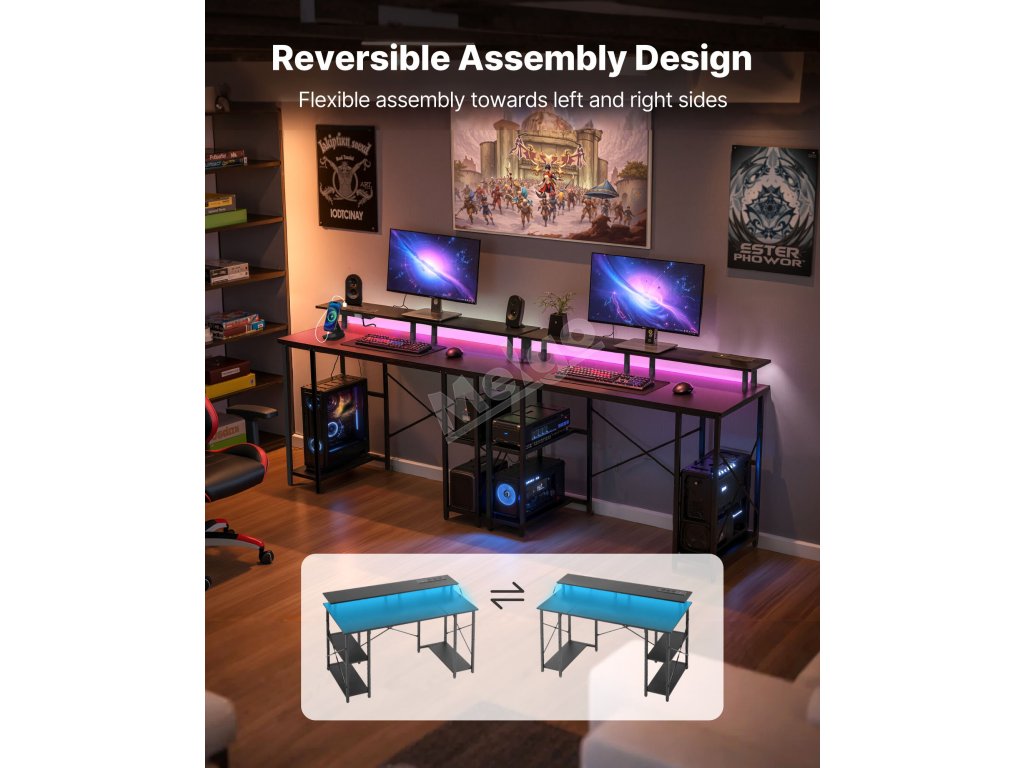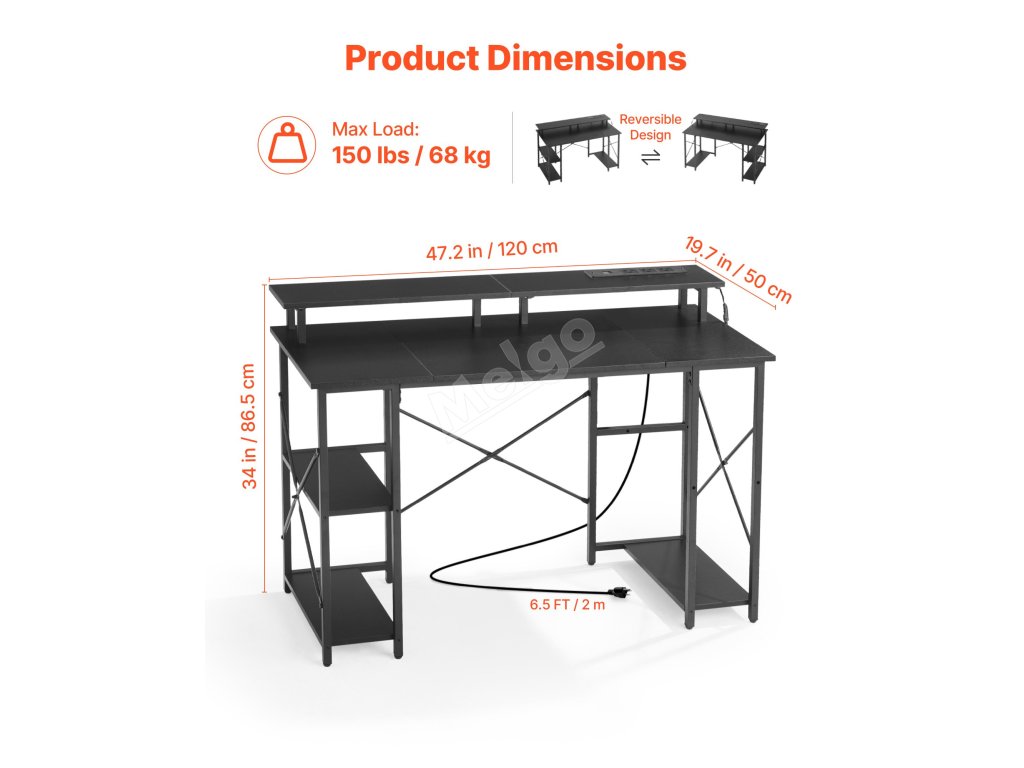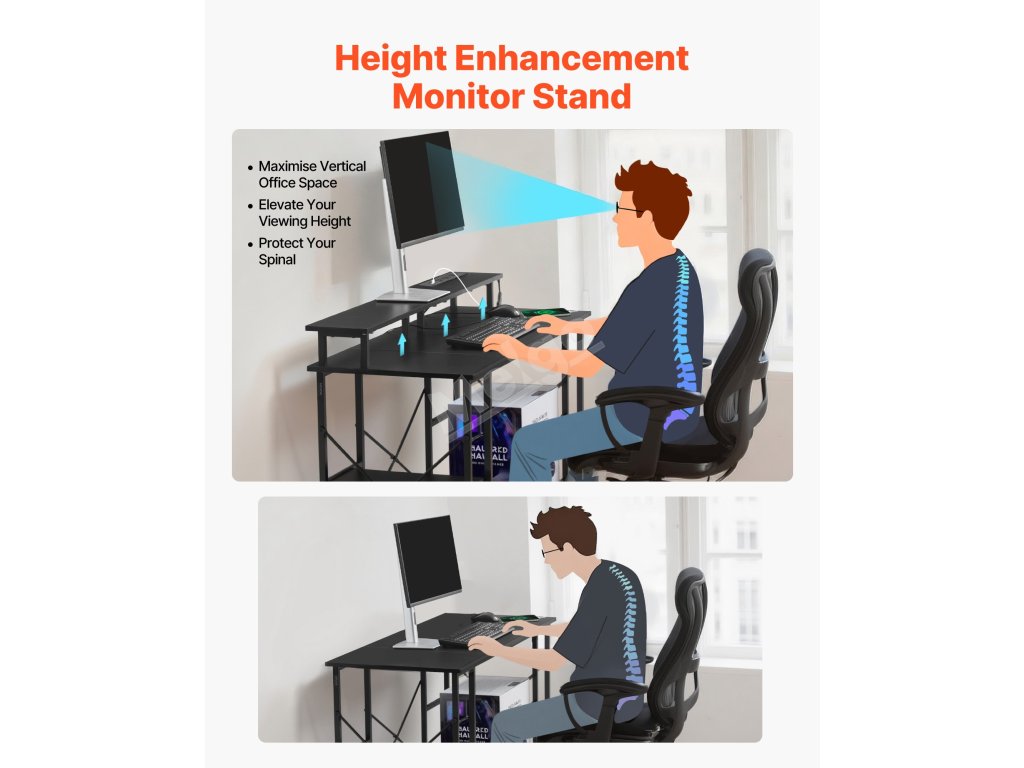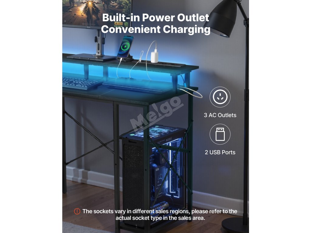 Vestavěná napájecí lišta usnadňuje napájení telefonů a herních zařízení nebo připojení dalších zařízení a stojan monitoru podporuje správné držení těla, abyste měli při práci doma pohodlný krk.