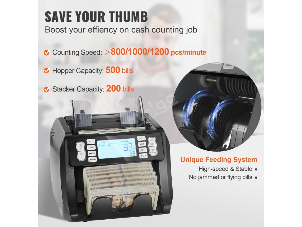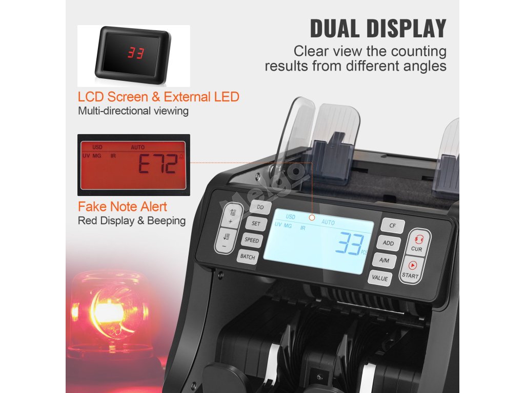 S počítačkou peněz VEVOR si vždy s jistotou spočítáte hotovost