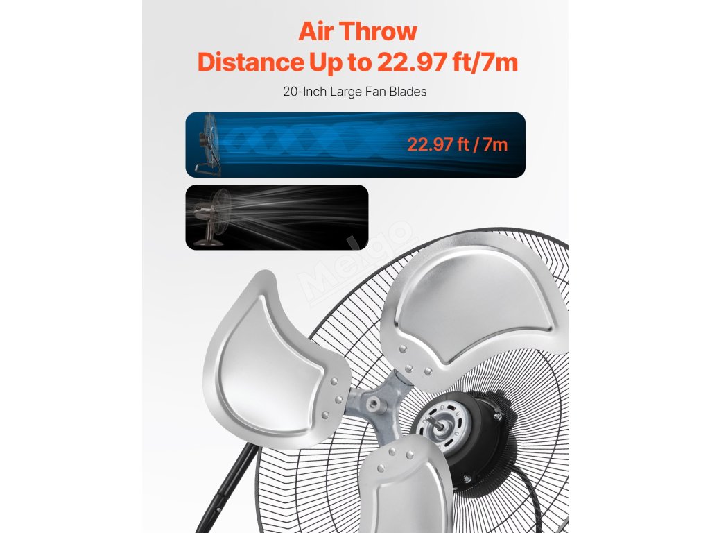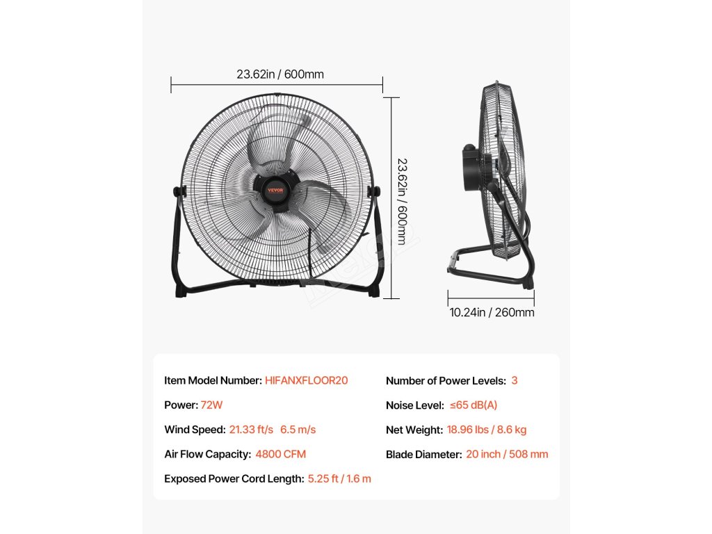 Tento vysokorychlostní průmyslový podlahový ventilátor nabízí průtok vzduchu 4800 CFM a výtlak vzduchu 22,97 ft. S hlučností ≤65 dB(A) poskytuje bezhlučné chlazení. Je vybaven 20palcovými hliníkovými lopatkami a antikorozní mřížkou, má 360° nastavitelný sklon, vestavěnou rukojeť a nástěnnou konstrukci, která je ideální pro všechny příležitosti.