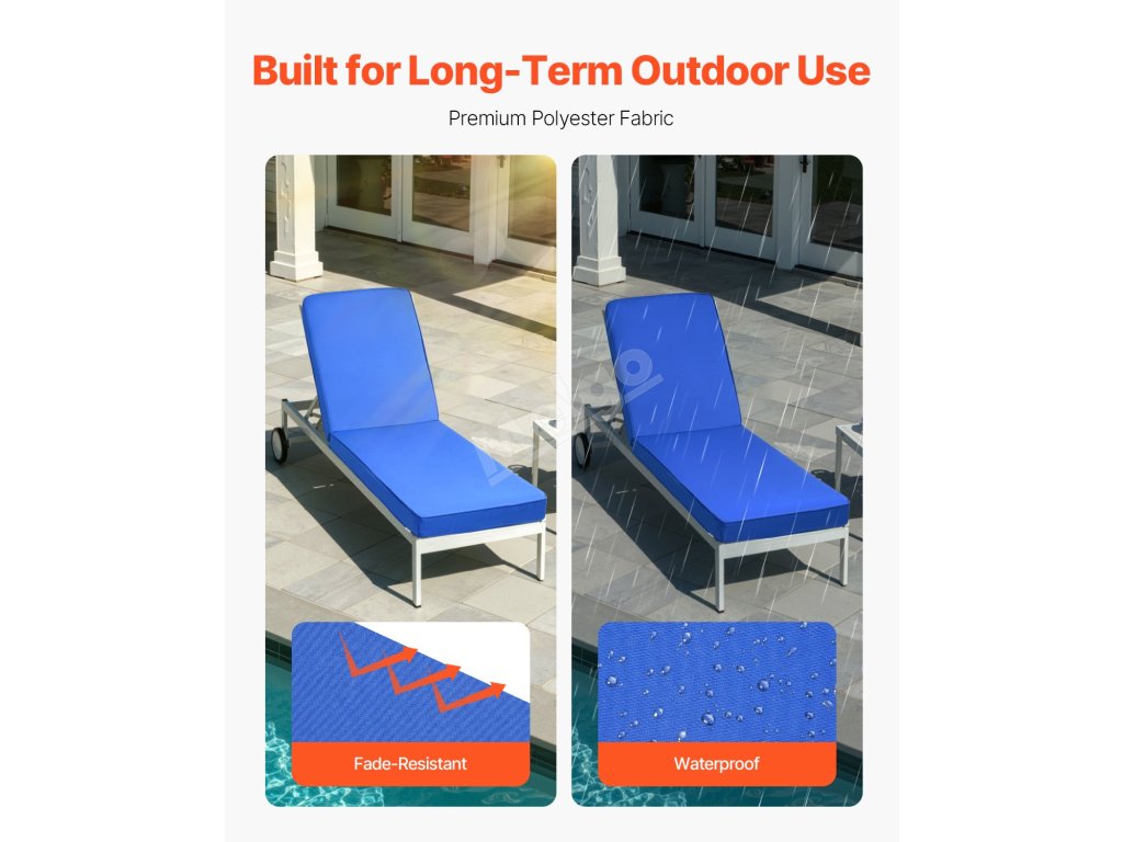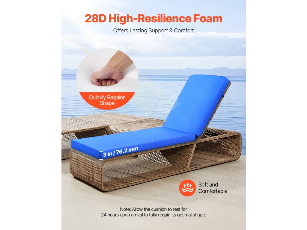 Podložka na lehátko 183×53.3×7.5 cm voděodolná s vázáními modrá