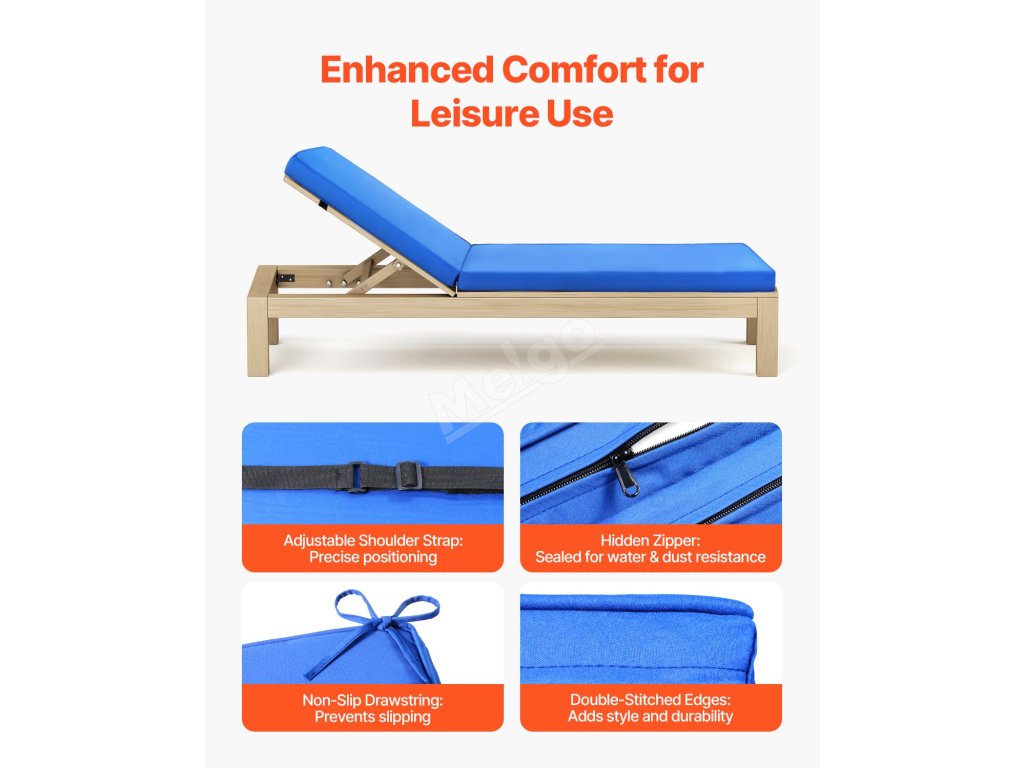 Tento polštářek na venkovní lehátko má univerzální velikost, která je vhodná pro většinu lehátek, a nabízí oporu celého těla a pohodlí na terasách, zahradách. Mezi promyšlené detaily patří nastavitelné ramenní popruhy, protiskluzové úchyty a skrytý zip pro snadné přenášení a bezpečné umístění.