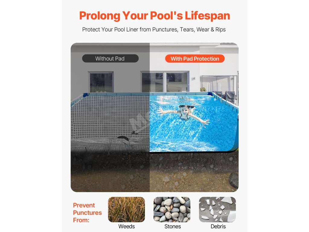 Naše extra silná bazénová vložka poskytuje vynikající ochranu před ostrými předměty, plevelem a znečištěním vody.