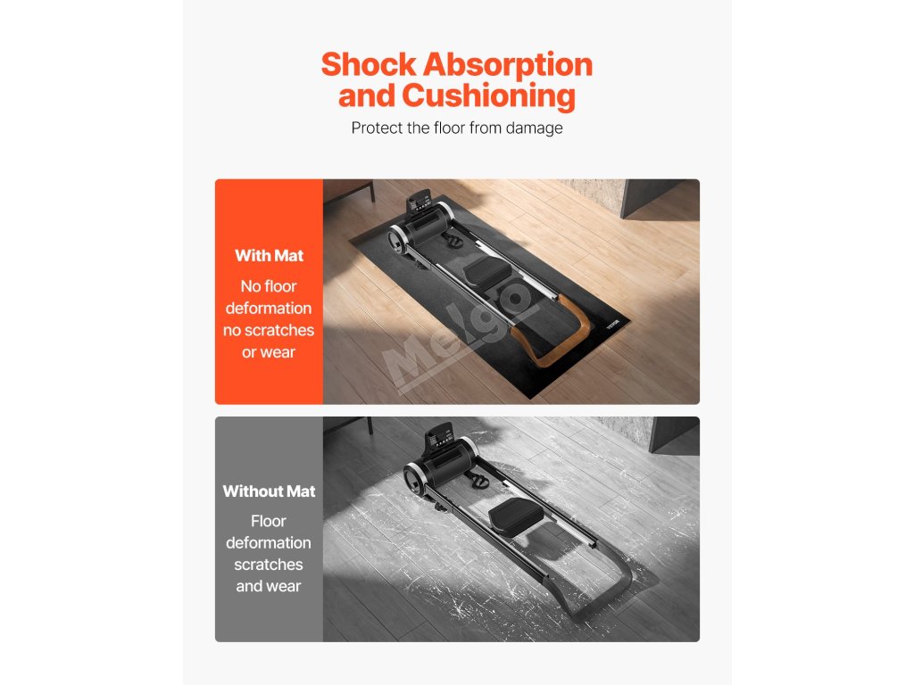 Tato podložka na cvičební nářadí poskytuje protiskluzovou a stabilní oporu, tlumí nárazy, snižuje hluk, je voděodolná a snadno se čistí, čímž účinně chrání vaše podlahy a koberce.