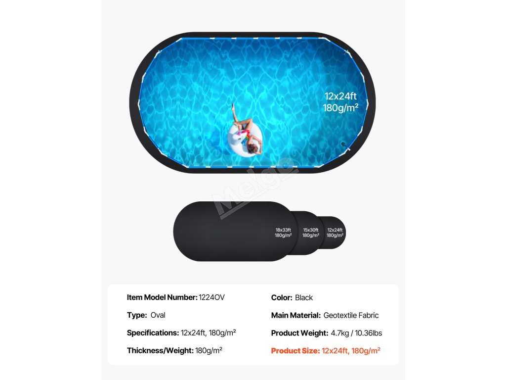 | Veľkosť výrobku | Ovál, 12x24 stôp, 180g/m2 |
