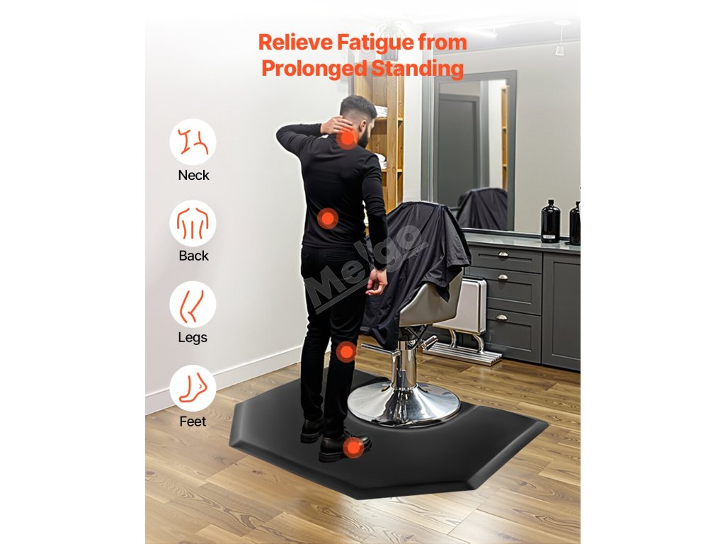 Podložka do salonu VEVOR 1225 x 1505 mm je navržena tak, aby poskytovala vynikající pohodlí a úlevu od únavy, zmírňovala bolesti zad, uvolňovala kolenní klouby a zmírňovala únavu nohou, čímž zvyšovala celkové pohodlí a efektivitu práce. Je odolná proti propíchnutí a zkroucení, zabraňuje uklouznutí, je trvanlivá a snadno se čistí.