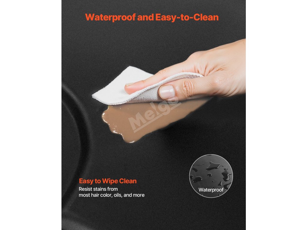 Povrch podložky je vyroben z PVC materiálu, je voděodolný a snadno se čistí. Je odolná vůči skvrnám od barvy na vlasy a oleje a lze ji snadno otřít. Díky zkoseným okrajům zabraňujícím uklouznutí, protiskluzové spodní straně a odolnosti proti propíchnutí a zkroucení zaručuje bezpečnost a trvanlivost.