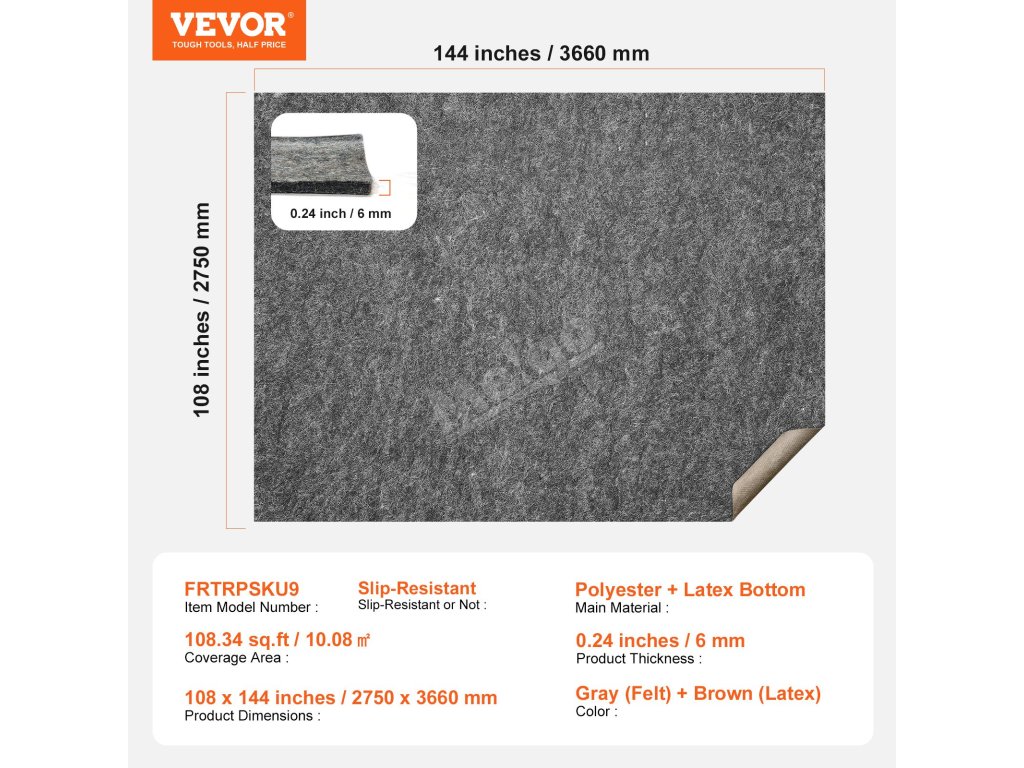 Podložka pod koberec protiskluzová 9'×12' 1/4" polyester+latex
