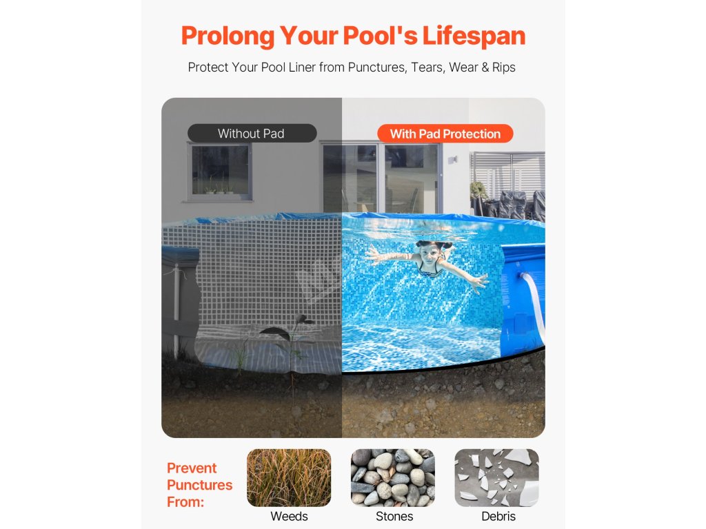 Naše extra silná bazénová vložka poskytuje vynikající ochranu před ostrými předměty, plevelem a znečištěním vody.