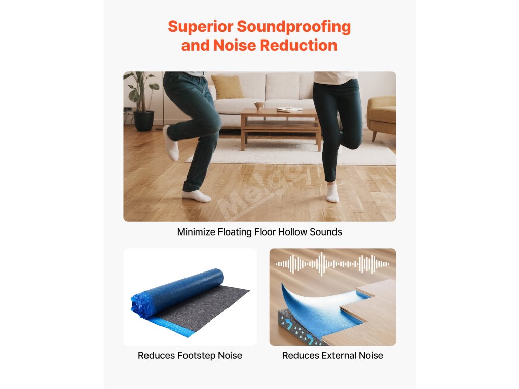 Podlahová izolace vyrobená z prvotřídních voděodolných a zvukotěsných materiálů nabízí výjimečnou odolnost a tlumení hluku. Poskytuje také vynikající odolnost proti vlhkosti a teplu, čímž chrání podlahu před vlhkostí a teplotními výkyvy.