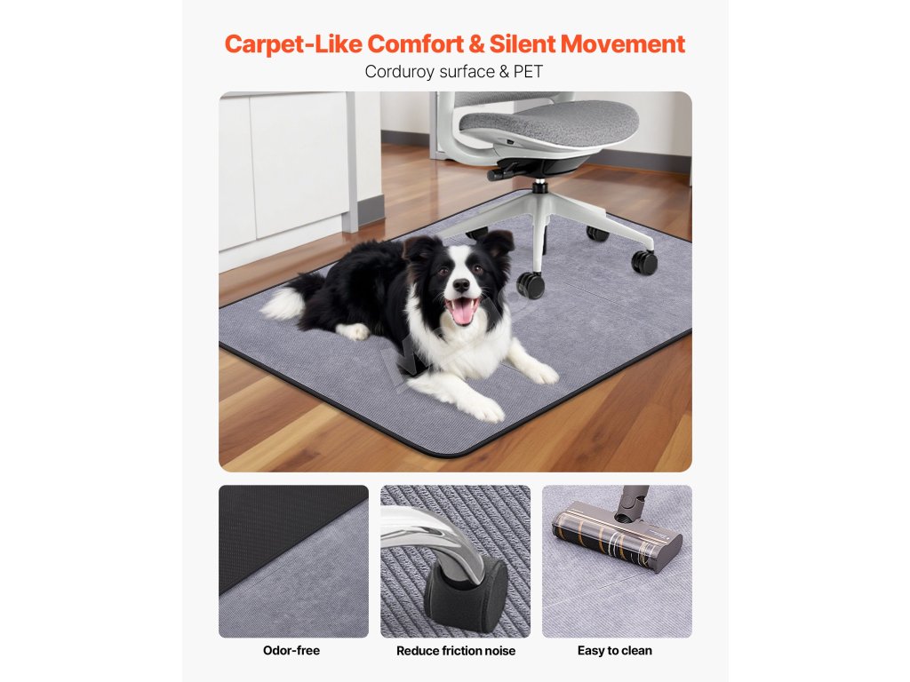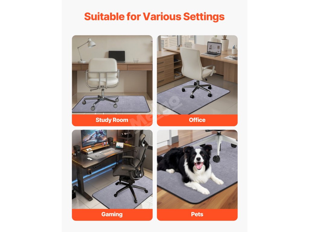 Měkký sametový povrch umožňuje hladký pohyb židle. Tento ergonomický design naší podložky pod stůl snižuje tlak na nohy a únavu, což usnadňuje dlouhé hodiny sezení. Snižuje také hluk způsobený třením, což vám pomůže soustředit se bez rušivých vlivů!