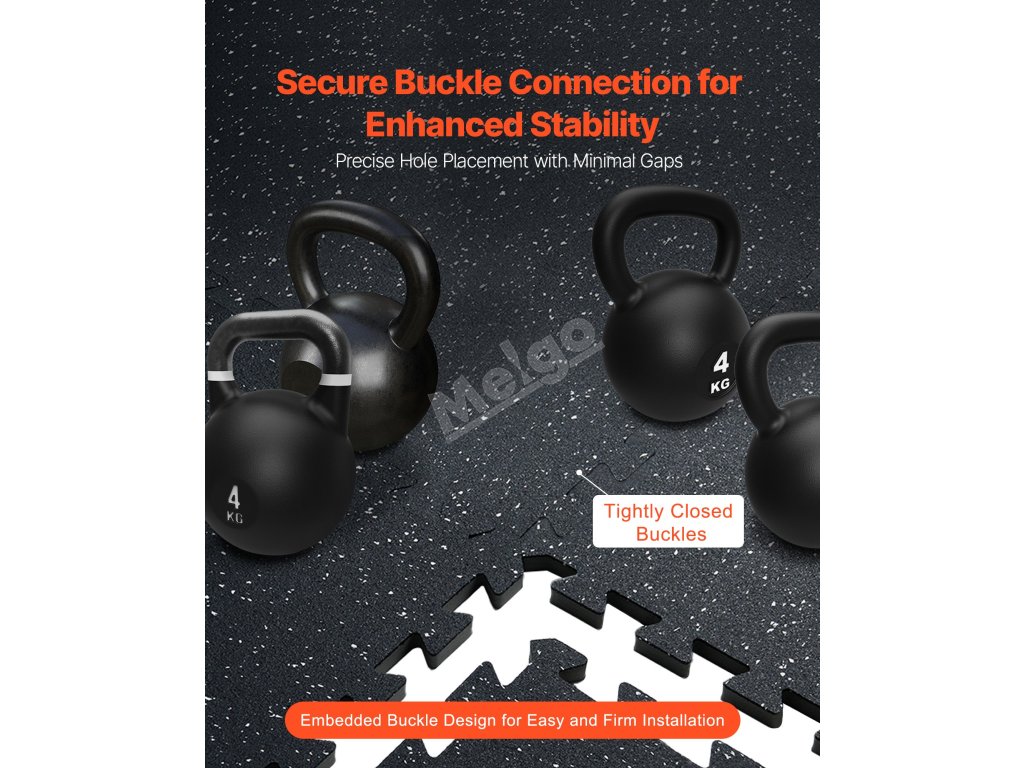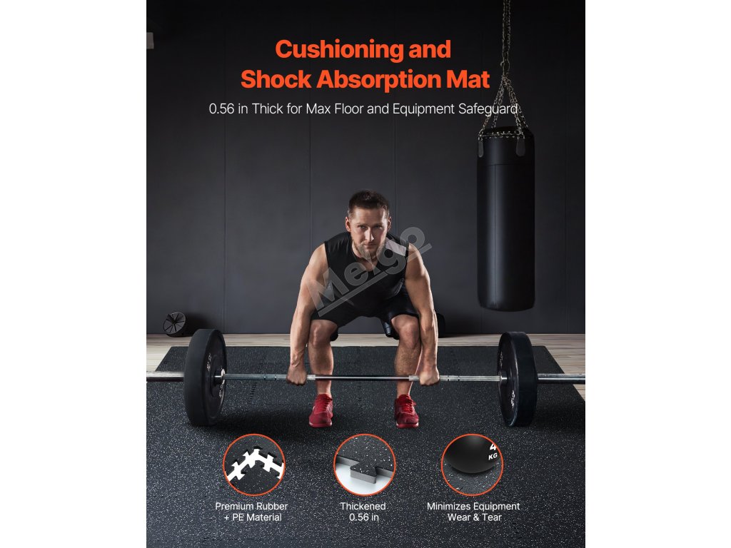 Tato blokovací podlahová rohož má tloušťku 0,56 palce a je vybavena vysoce kvalitní pryžovou vrchní vrstvou pro vynikající odolnost proti uklouznutí a spodní vrstvou z pěny EVA s vysokou hustotou pro účinné tlumení nárazů a podporu, což zajišťuje dvojnásobnou bezpečnost během tréninku.