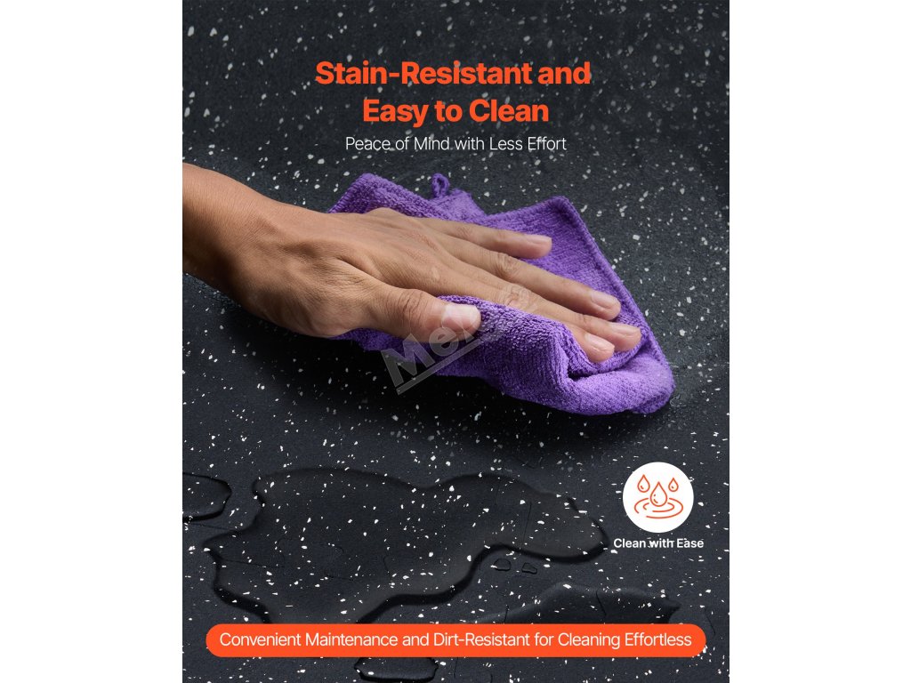 Tato gumová rohož z voděodolného materiálu odolného proti vlhkosti se snadno čistí - stačí ji jen otřít. Je vhodná pro domácí posilovny, podniky, studia a komerční fitness centra.