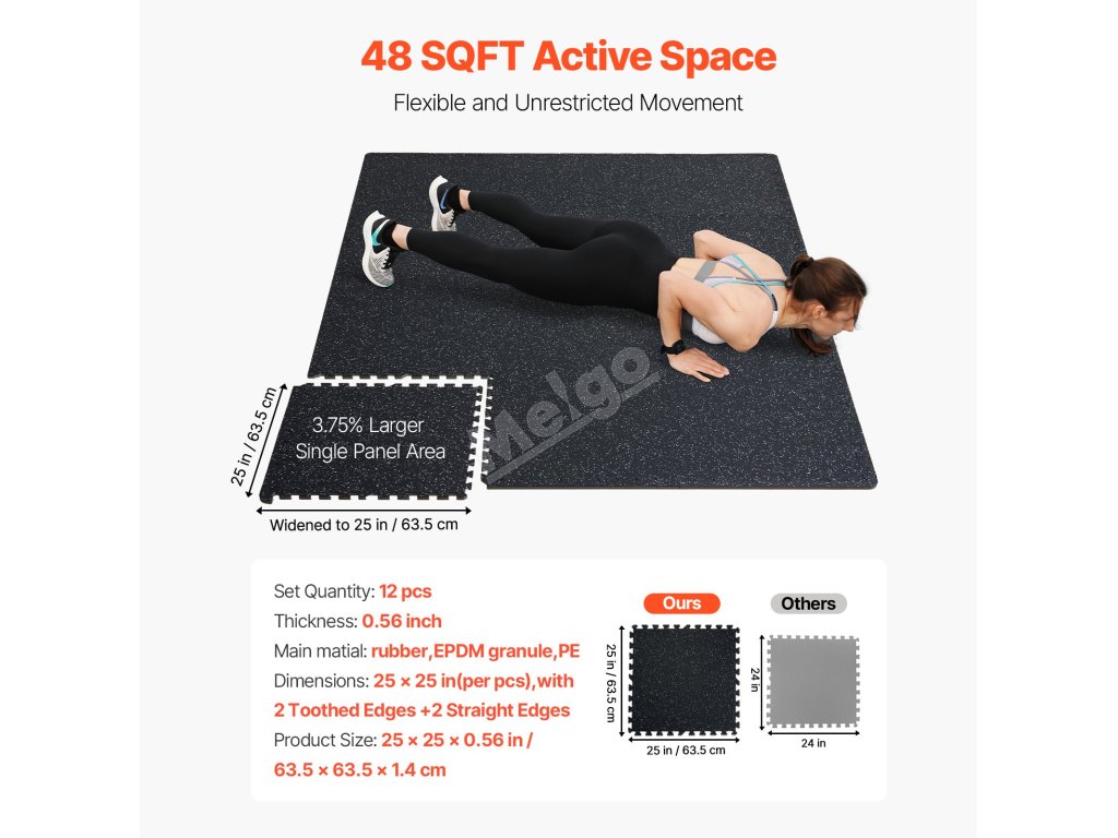 Podložky do posilovny 12 ks 0.56 inch guma eva 25"×25" 48 sq.ft