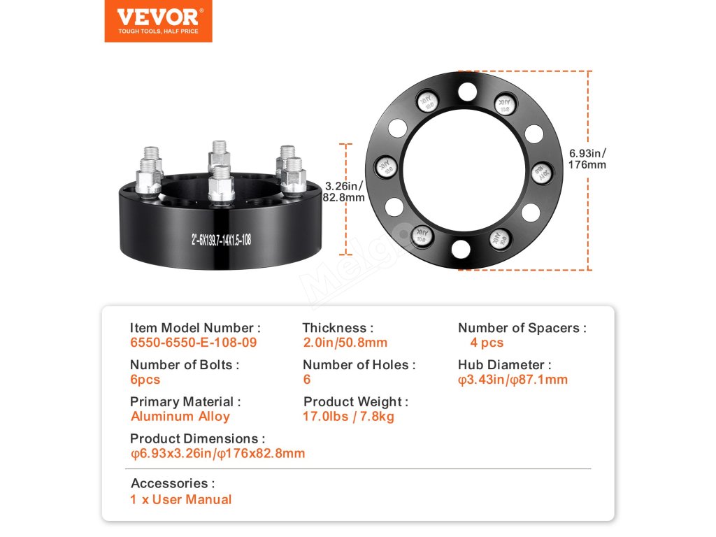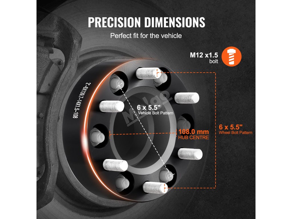 Podložky kol tloušťka 2" rozteč 6×5.5" 108 mm středové m14×1.5 4 ks